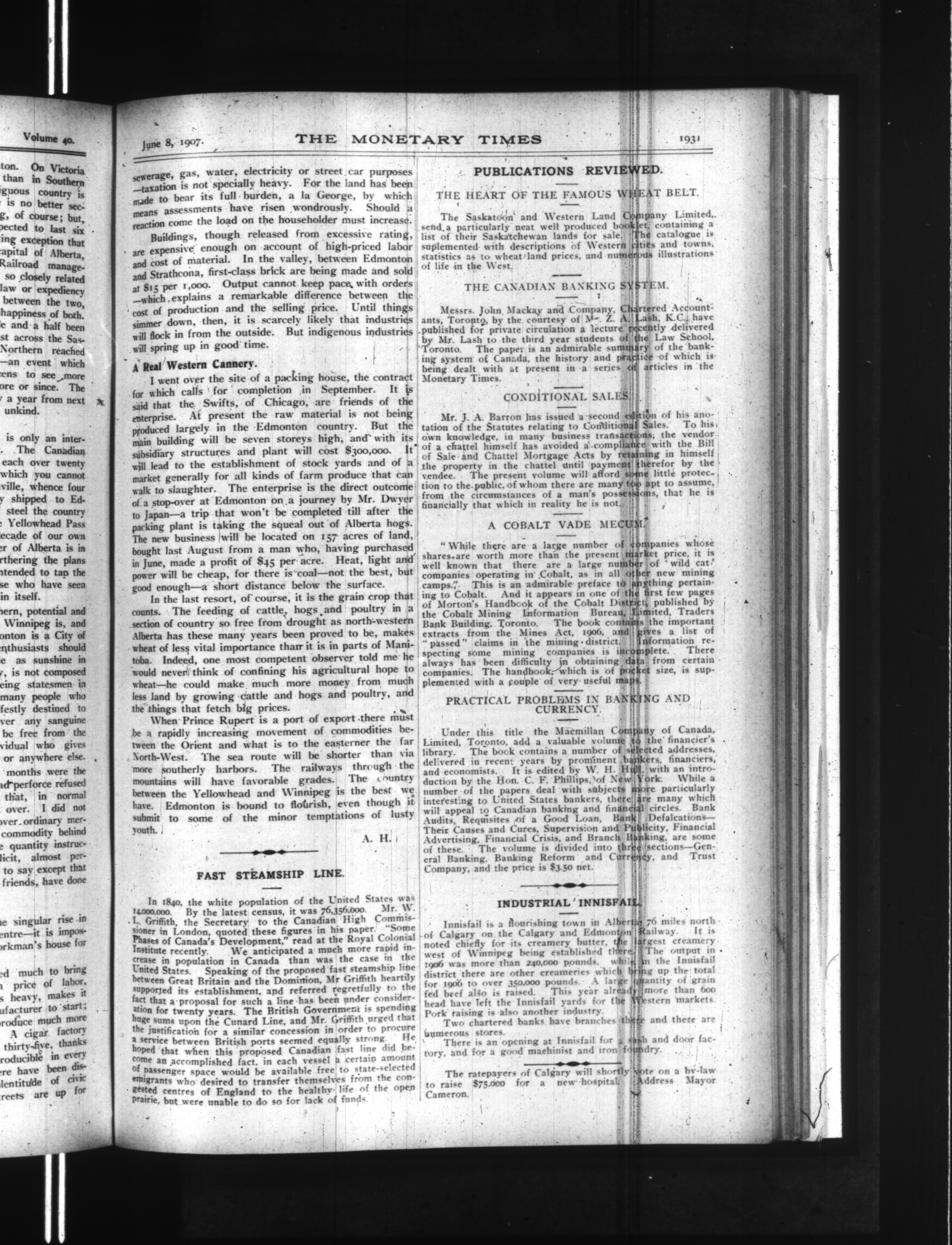 The monetary times, trade review and insurance chronicle : Vol. 40, No. 49 (June 8, 1907)