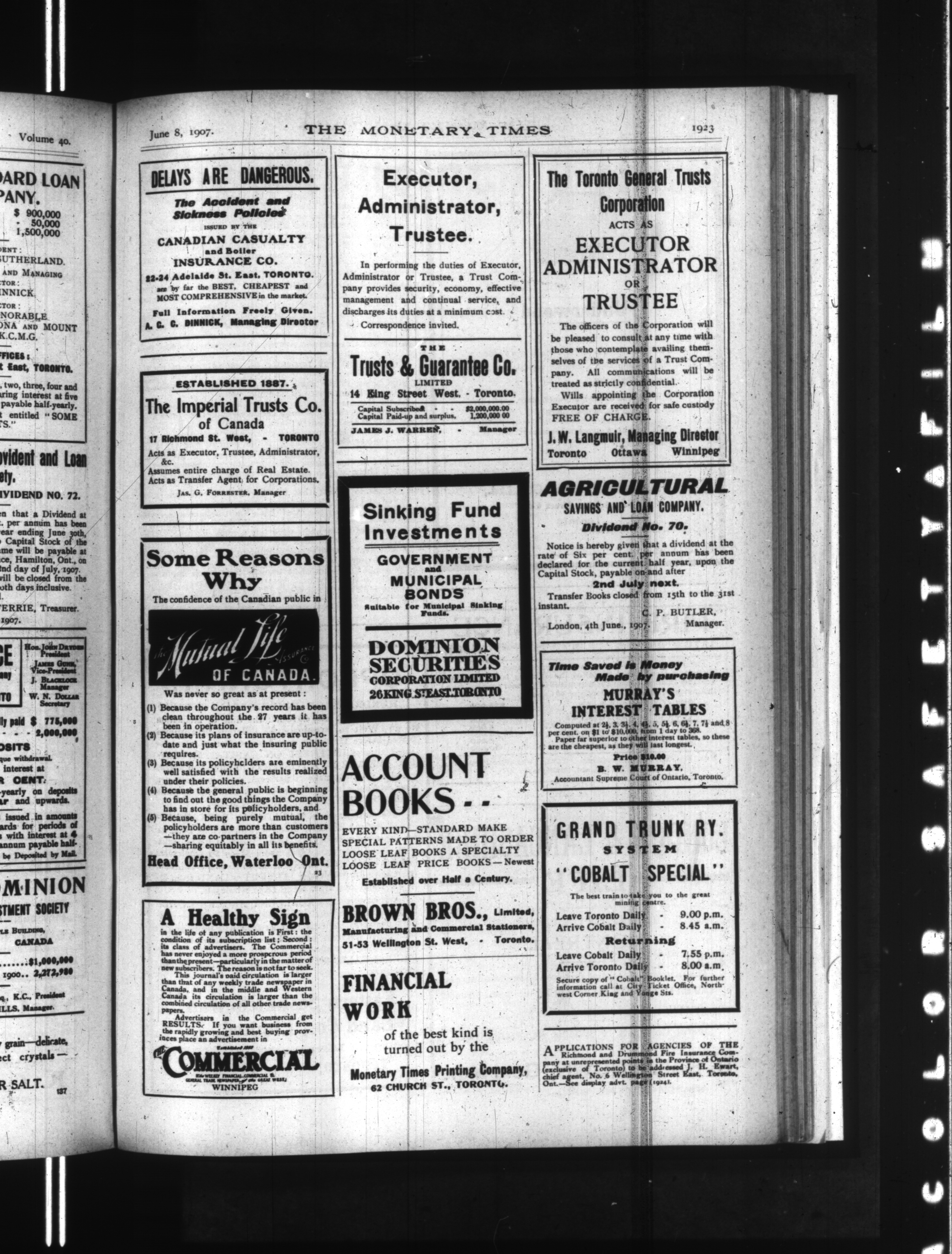 The monetary times, trade review and insurance chronicle : Vol. 40, No. 49 (June 8, 1907)