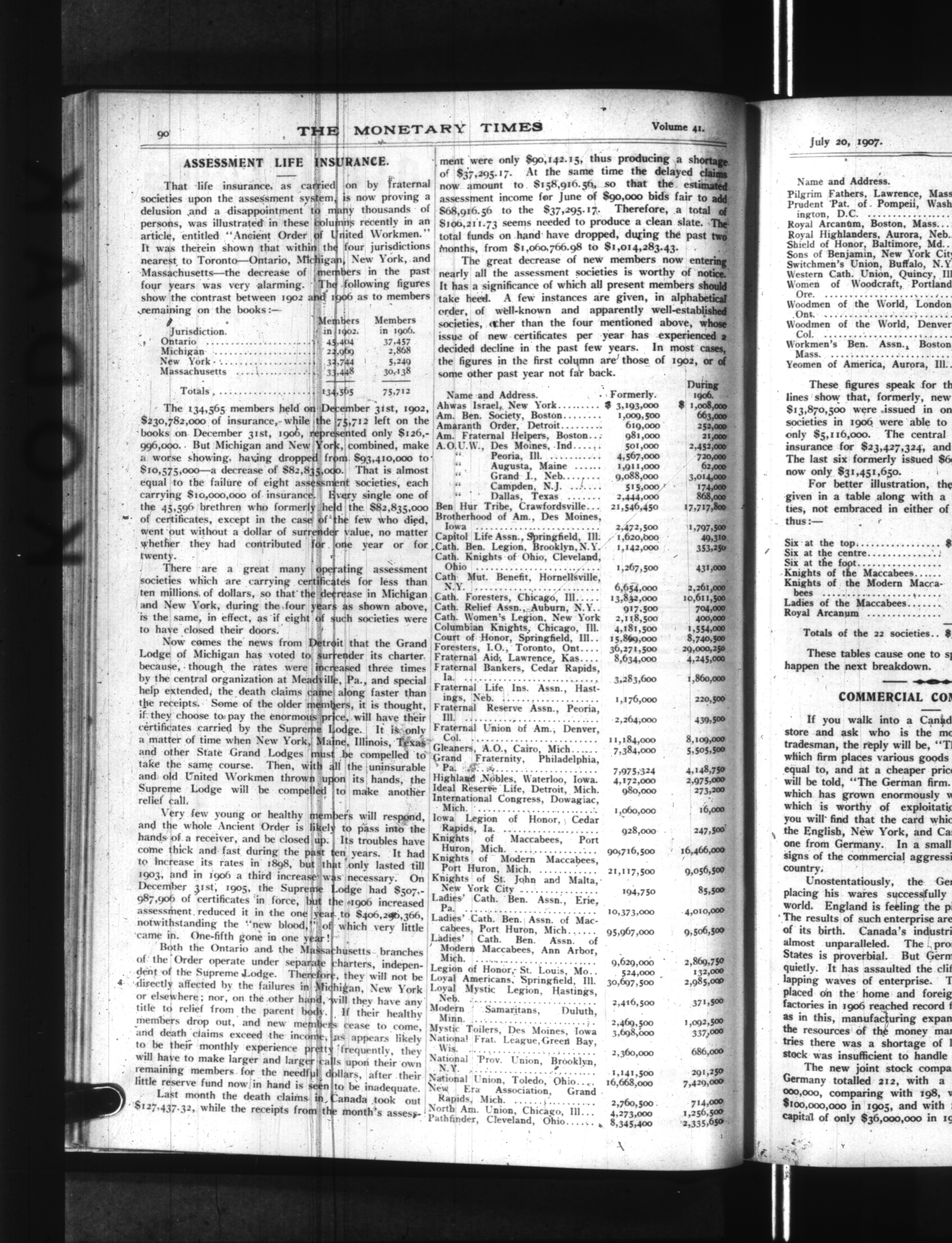 The monetary times, trade review and insurance chronicle : Vol. 41, No. 3 (July 20, 1907)