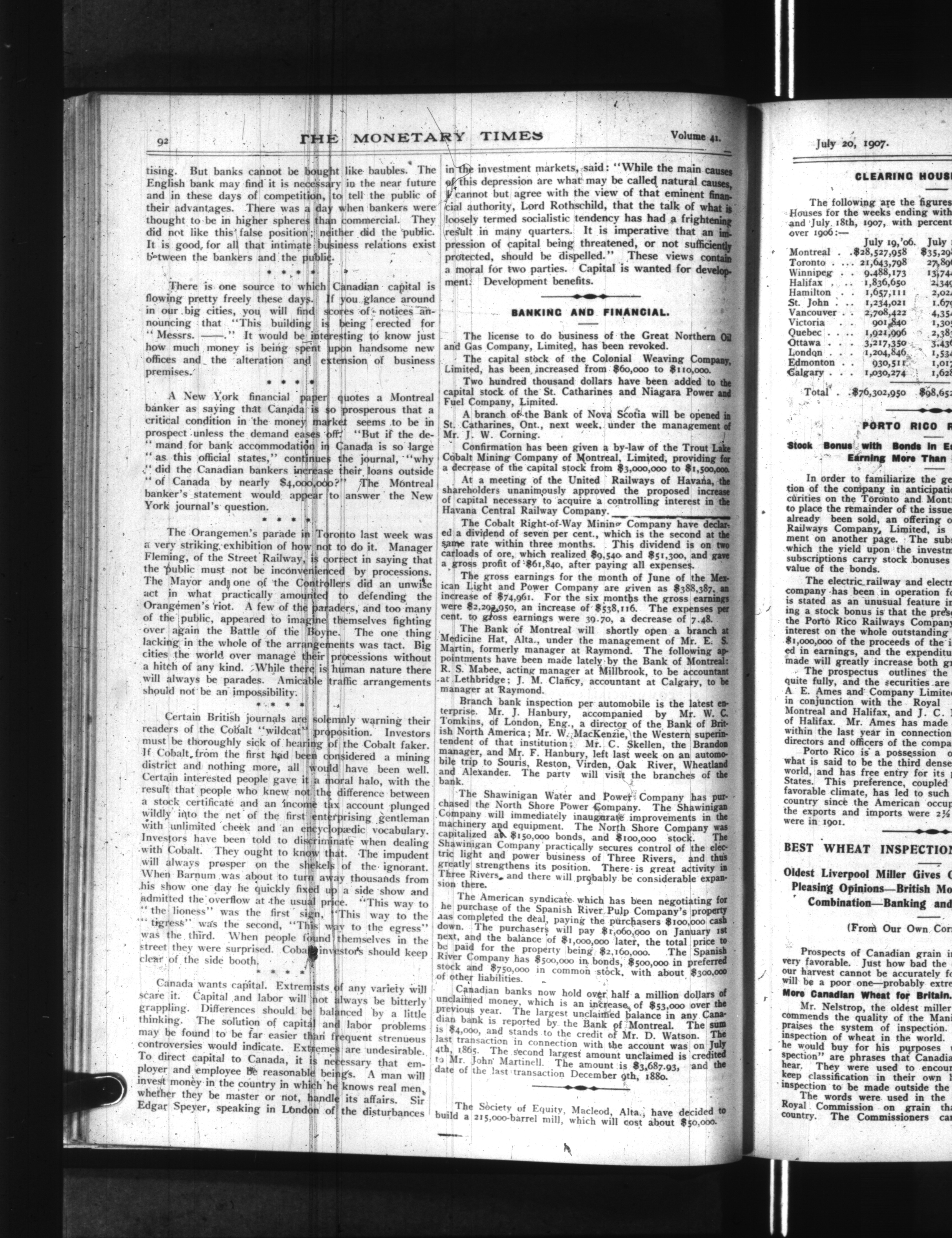The monetary times, trade review and insurance chronicle : Vol. 41, No. 3 (July 20, 1907)