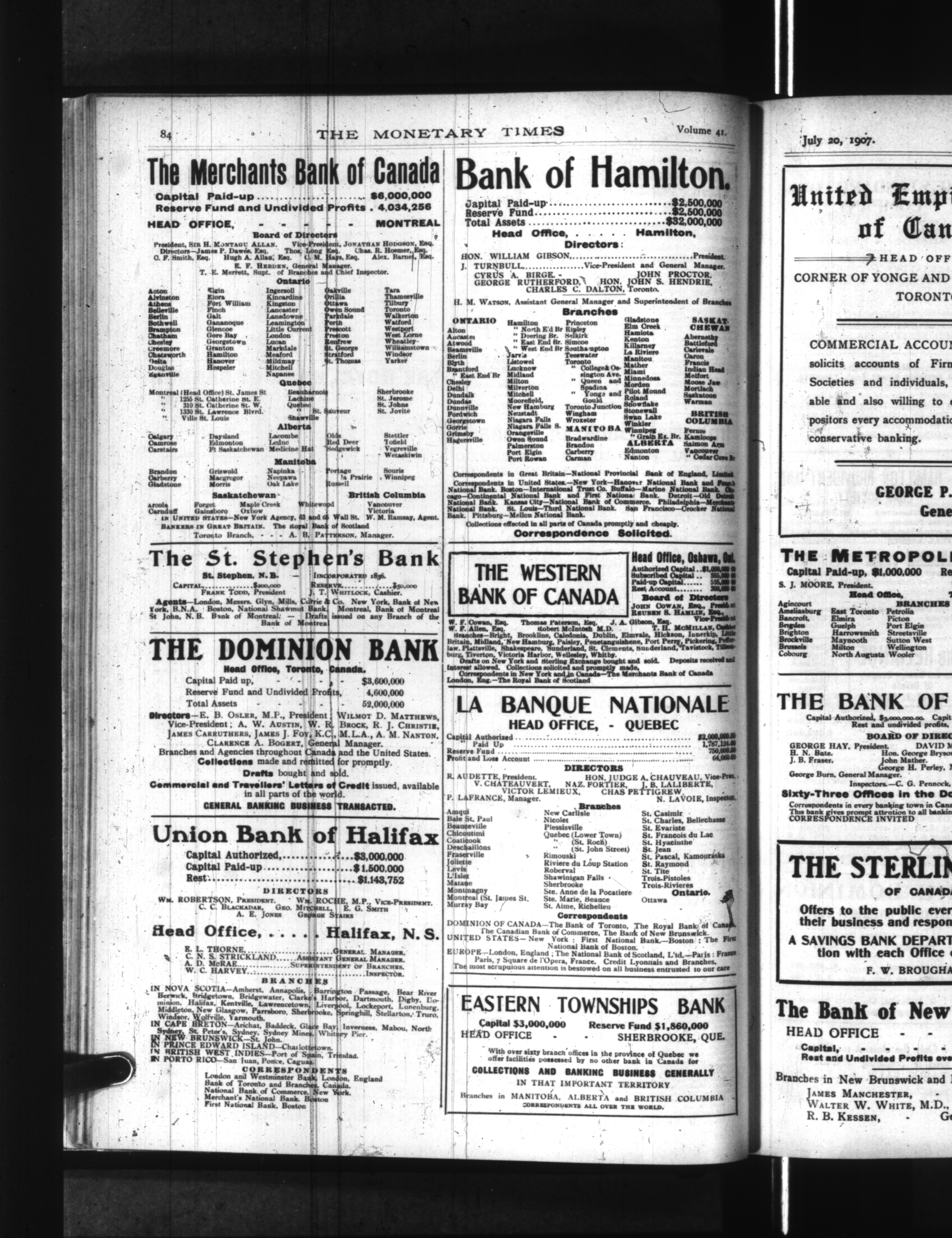 The monetary times, trade review and insurance chronicle : Vol. 41, No. 3 (July 20, 1907)