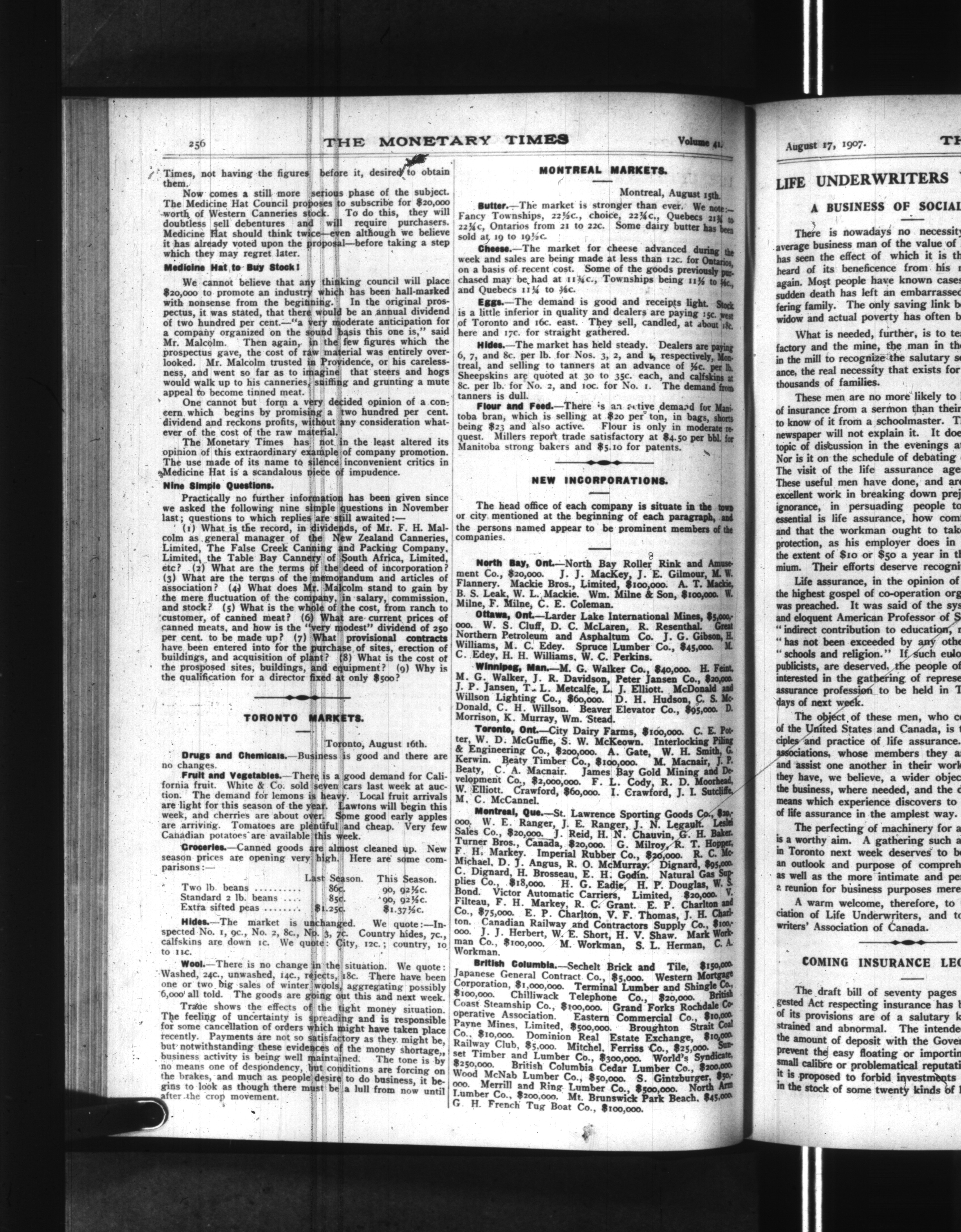 The monetary times, trade review and insurance chronicle : Vol. 41, No. 7 (Aug. 17, 1907)