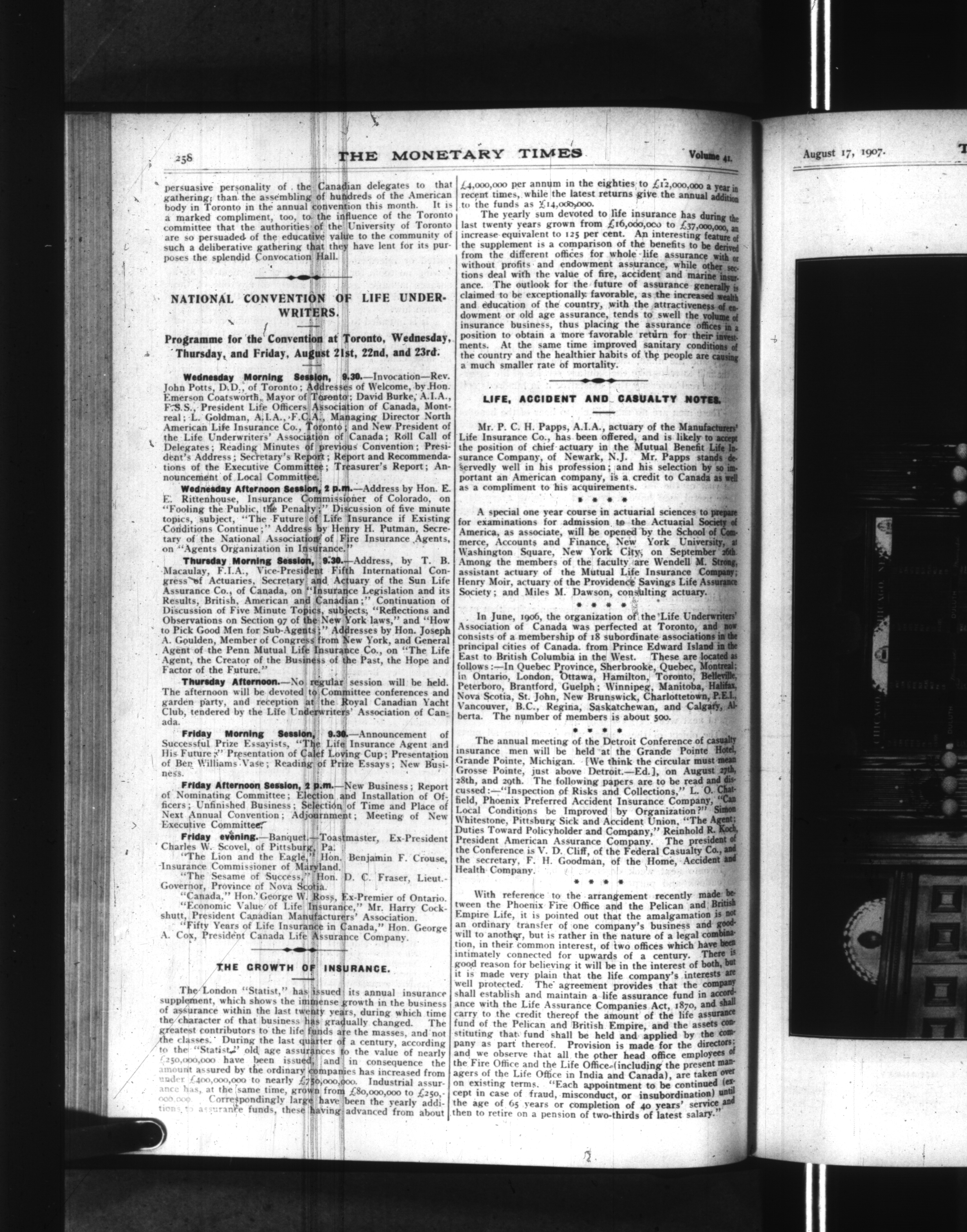 The monetary times, trade review and insurance chronicle : Vol. 41, No. 7 (Aug. 17, 1907)