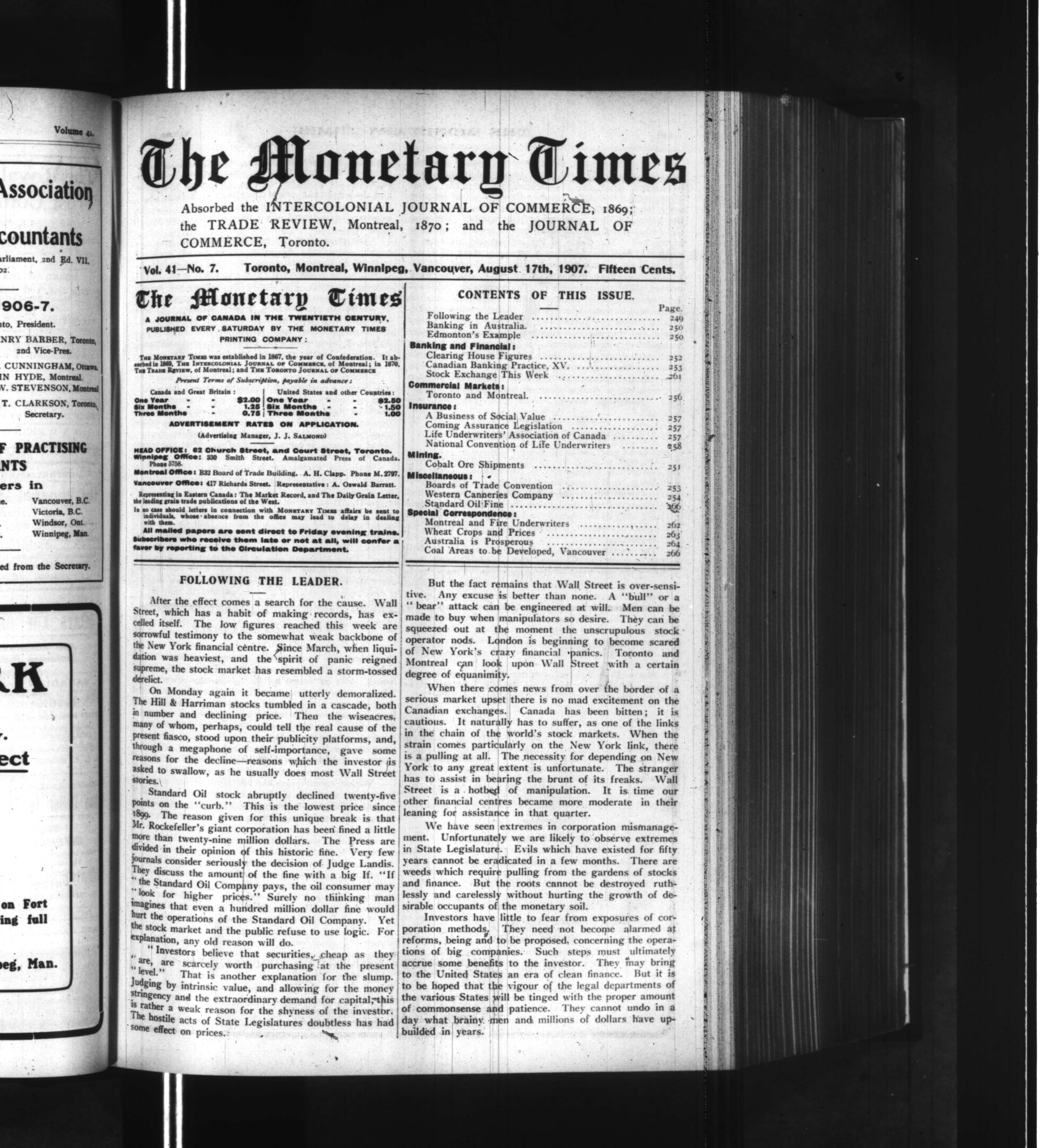 The monetary times, trade review and insurance chronicle : Vol. 41, No. 7 (Aug. 17, 1907)