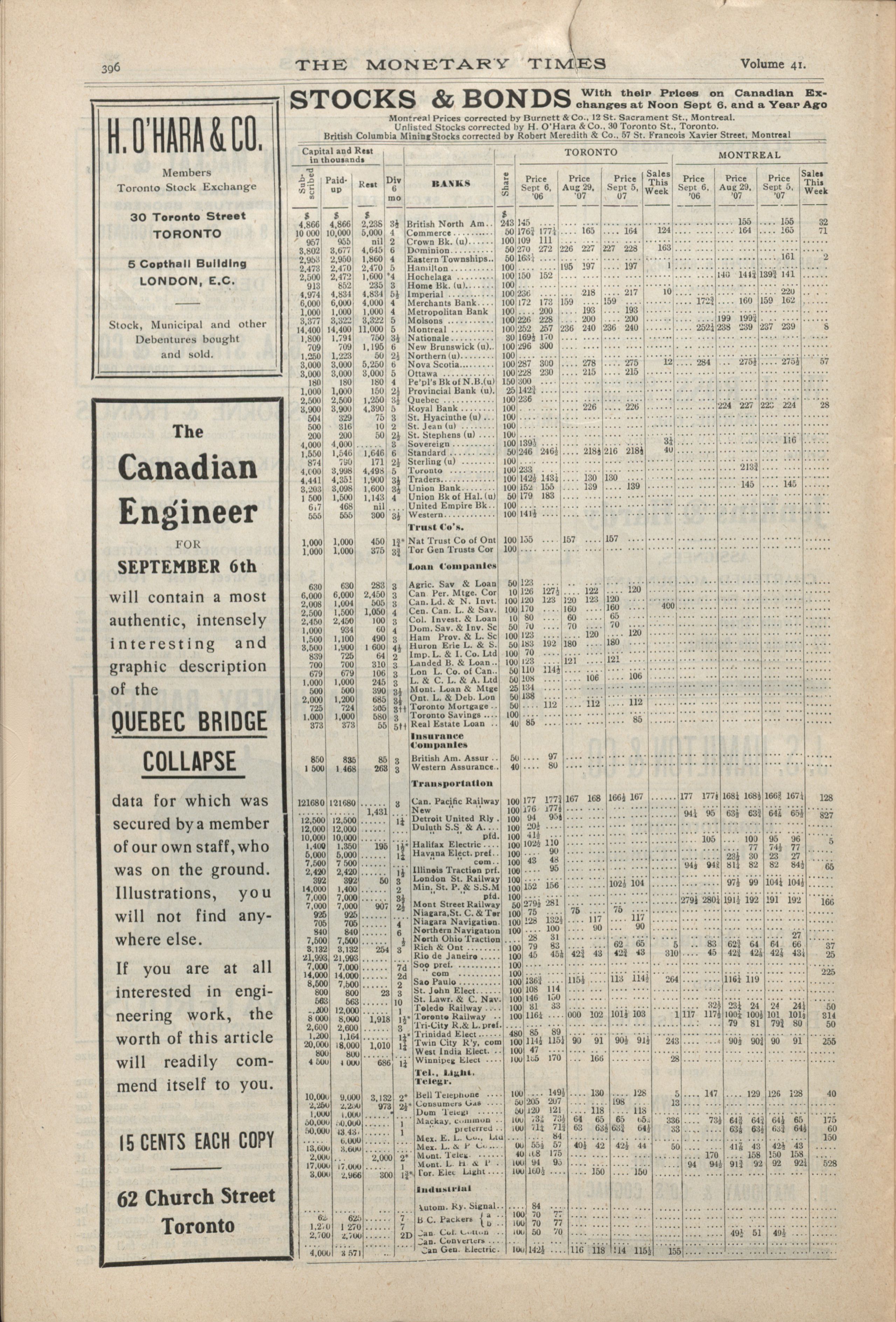 - The Monetary Times, trade review and insurance chronicle. : Vol. 41 No. 10. (Sept. 7th, 1907)