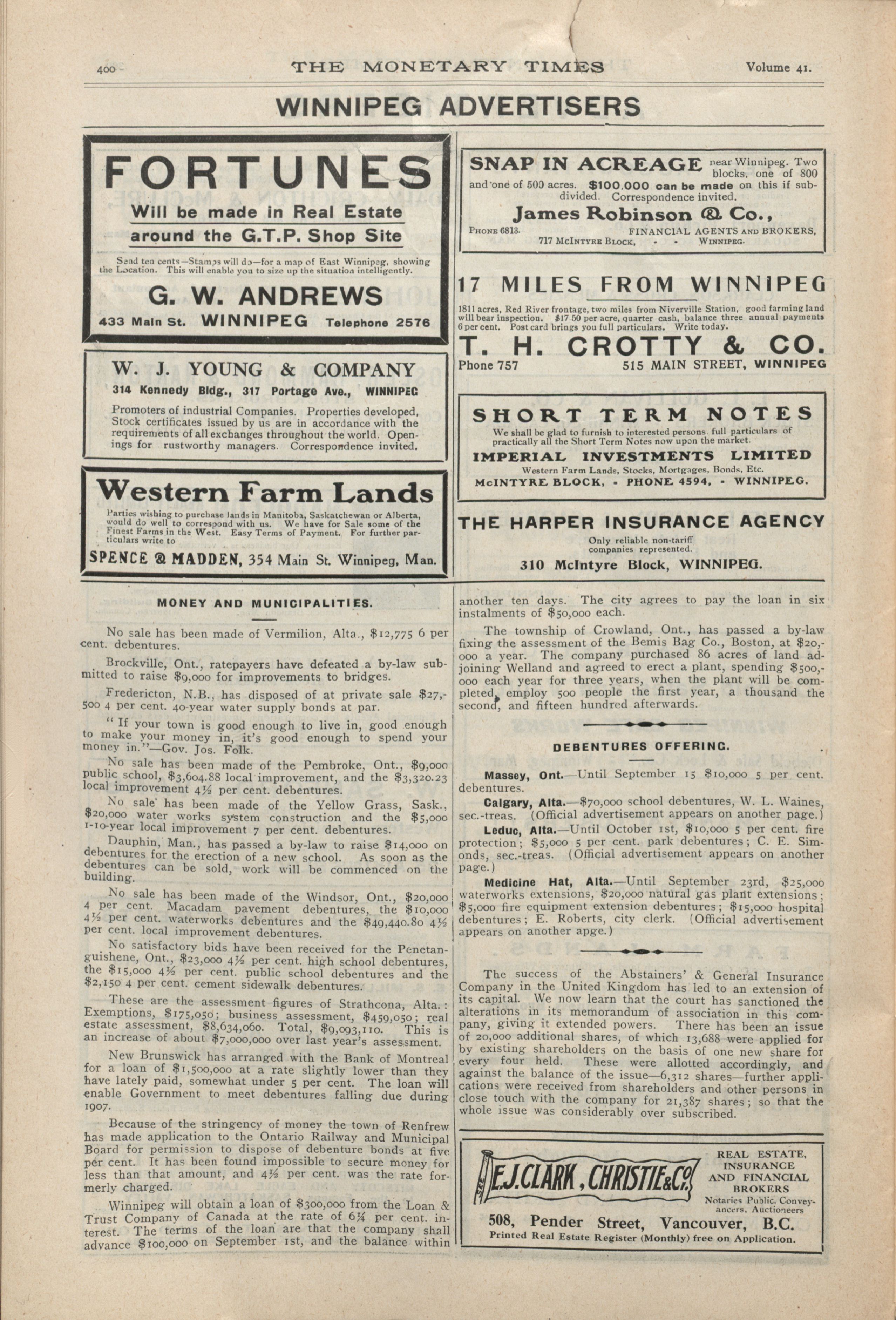 Toronto, Montreal, Winnipeg, Vancouver : Monetary Times Printing Company, [1907]; 40 images avec recherche en texte intégral