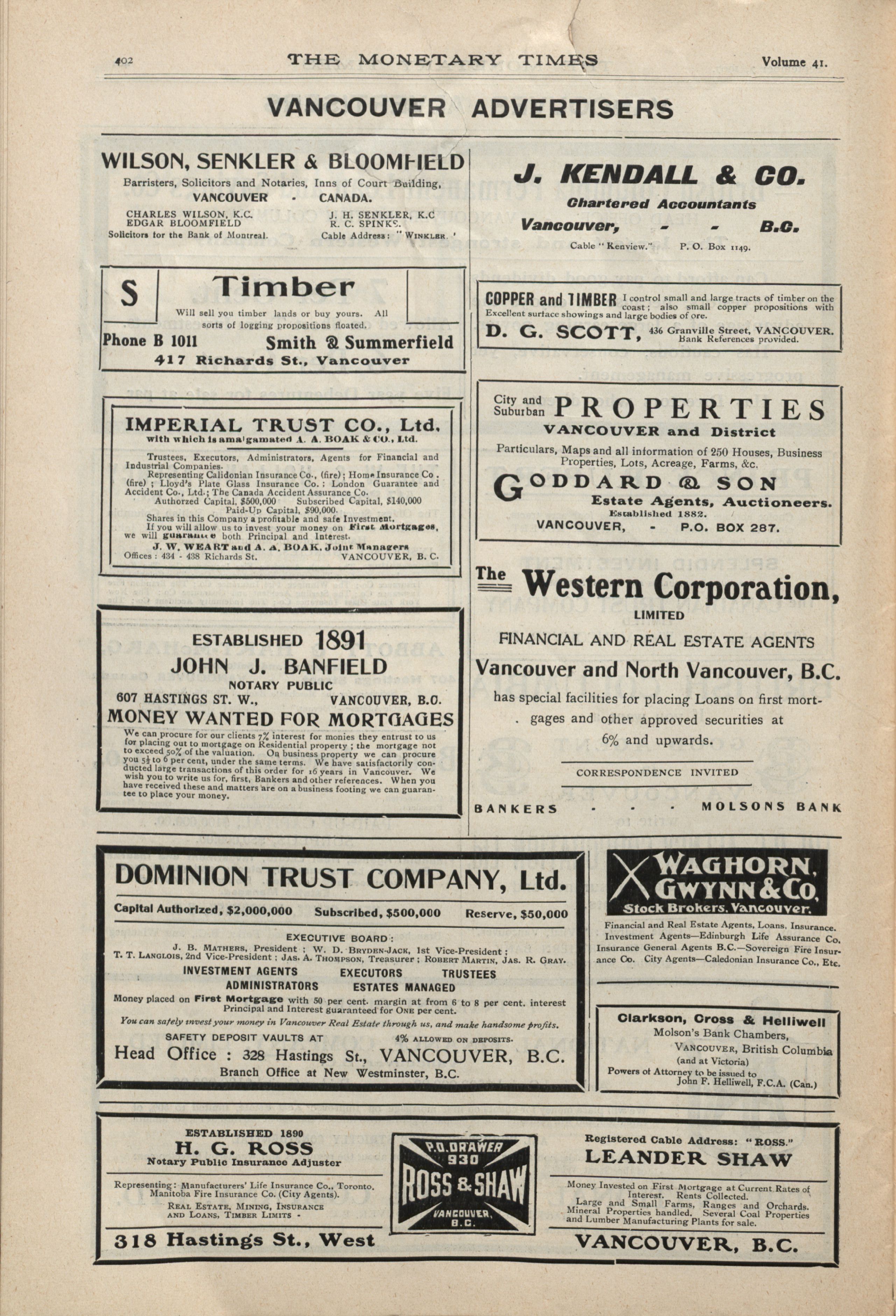 - Toronto, Montreal, Winnipeg, Vancouver : Monetary Times Printing Company, [1907]