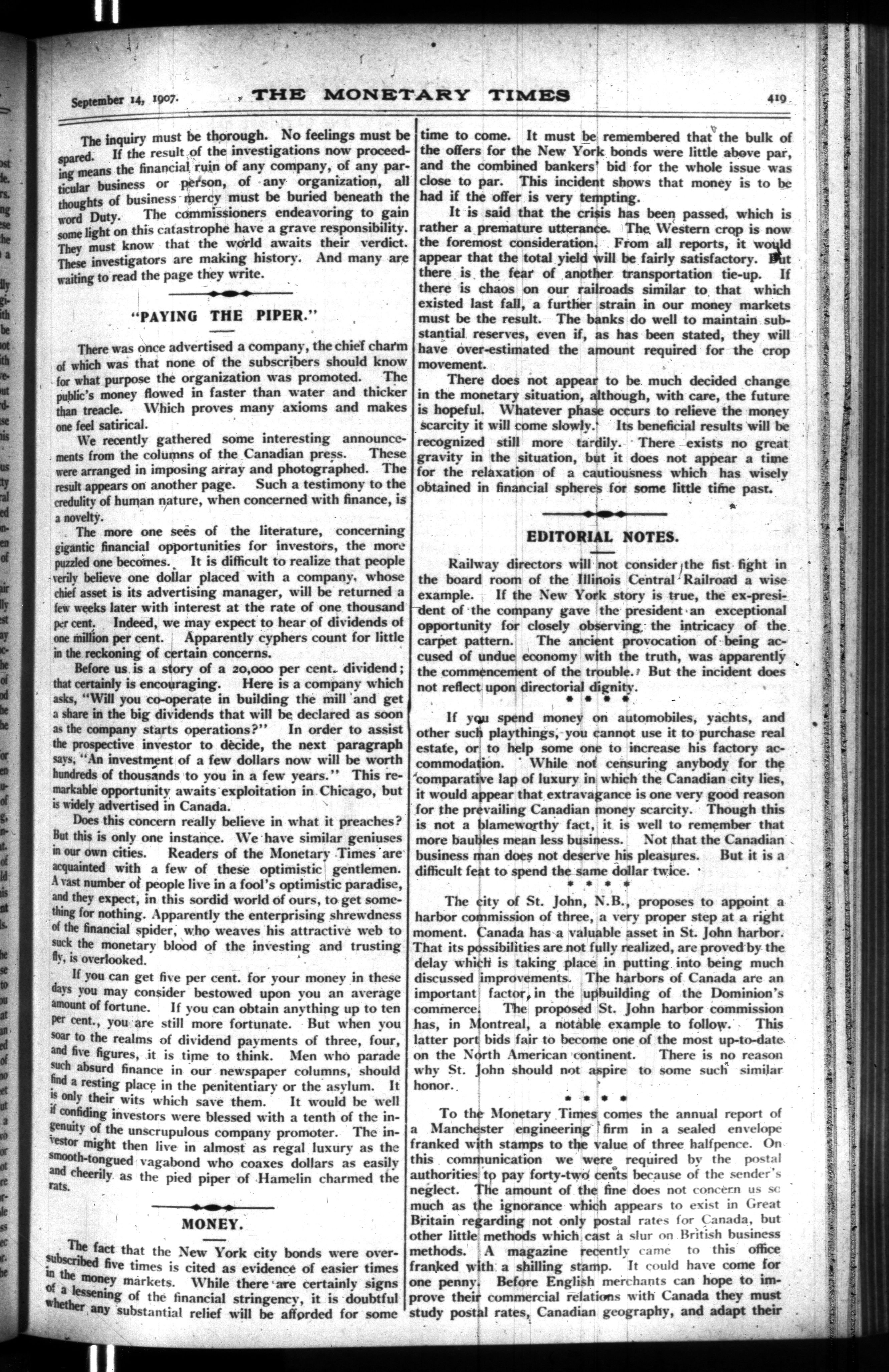 The monetary times, trade review and insurance chronicle : Vol. 41, No. 11 (Sept. 14, 1907)