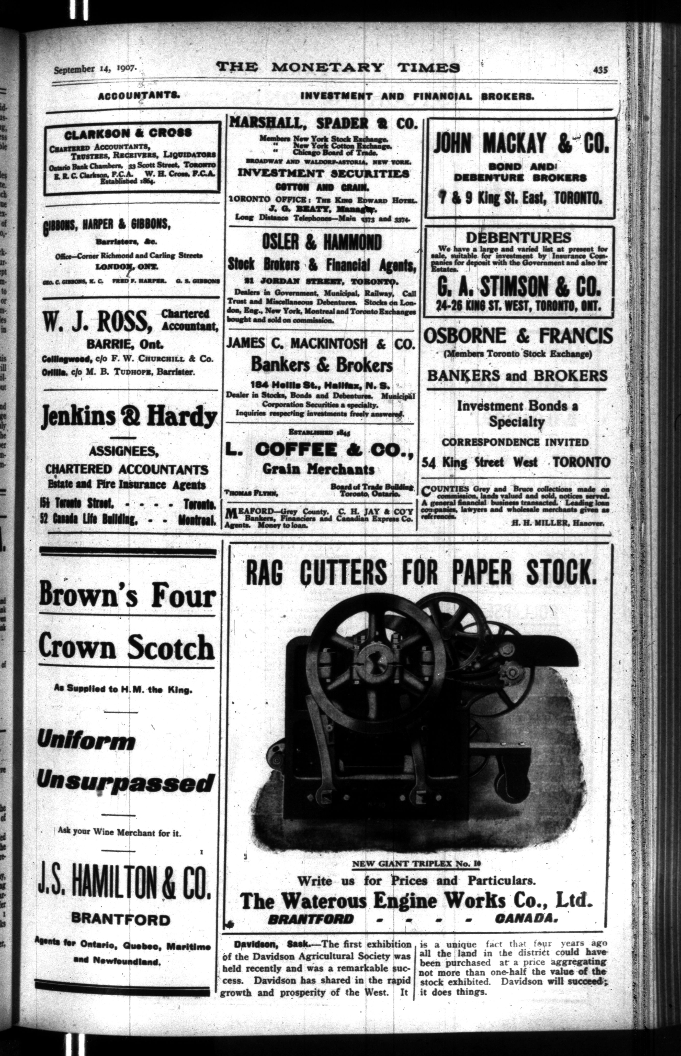 The monetary times, trade review and insurance chronicle : Vol. 41, No. 11 (Sept. 14, 1907)