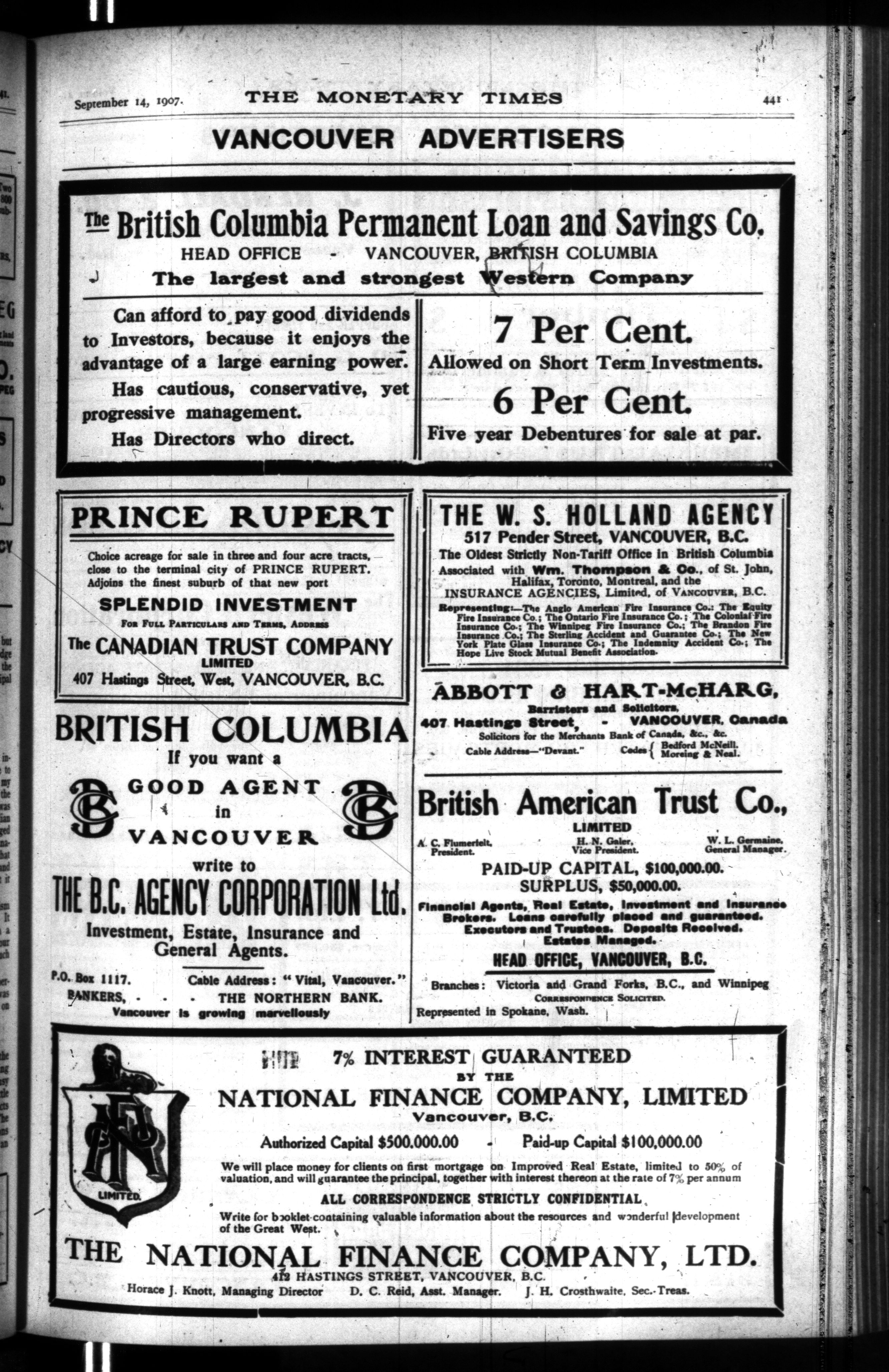 The monetary times, trade review and insurance chronicle : Vol. 41, No. 11 (Sept. 14, 1907)