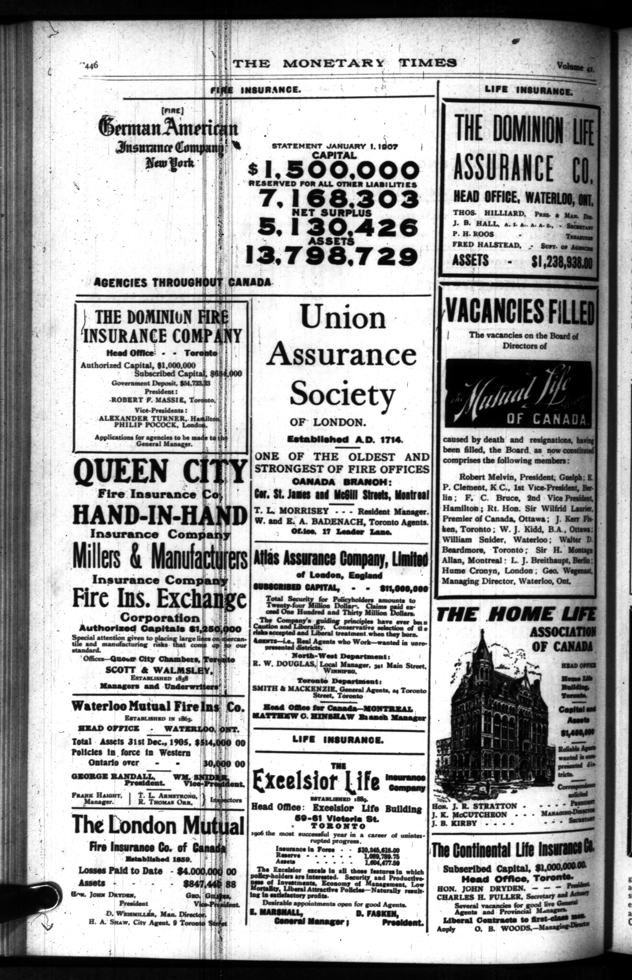The monetary times, trade review and insurance chronicle : Vol. 41, No. 11 (Sept. 14, 1907)