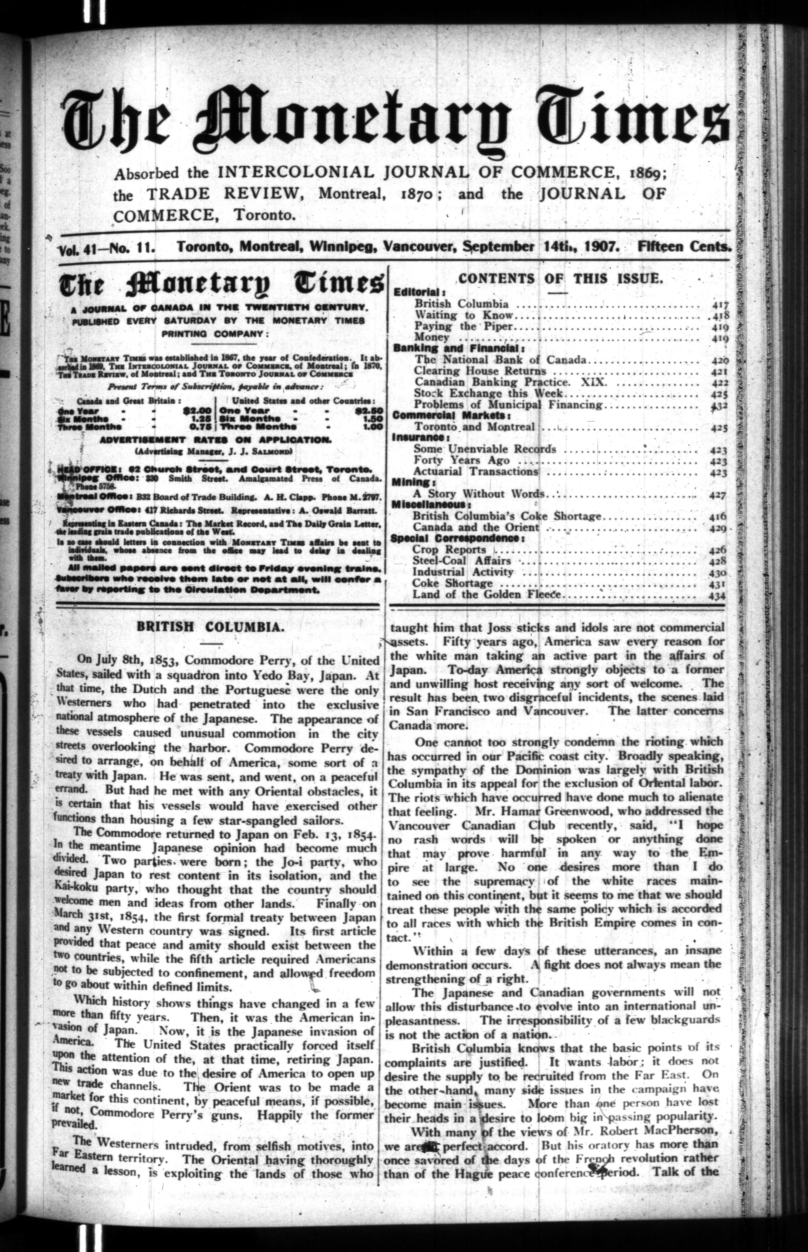 The monetary times, trade review and insurance chronicle : Vol. 41, No. 11 (Sept. 14, 1907)