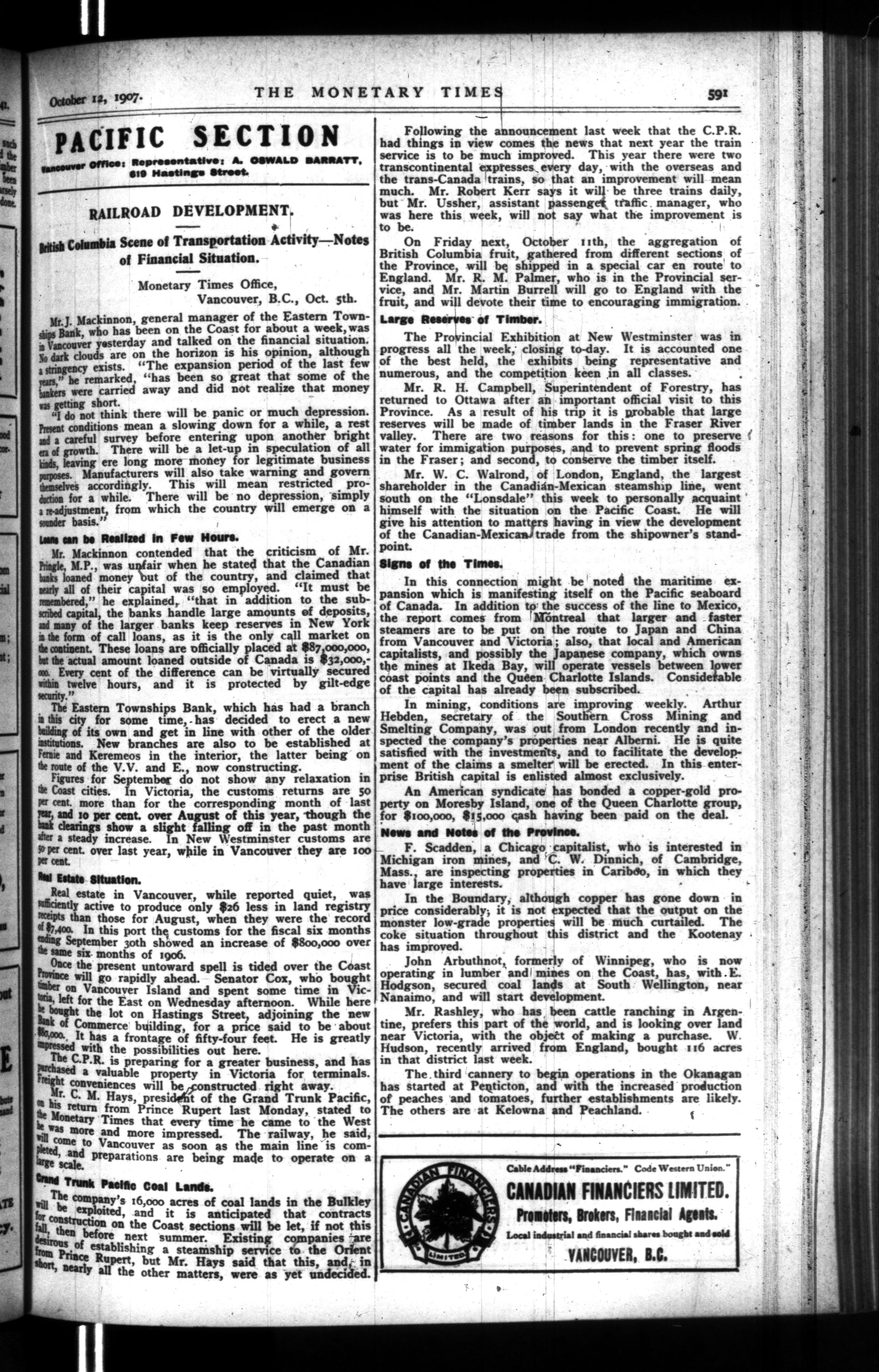 The monetary times, trade review and insurance chronicle : Vol. 41, No. 15 (Oct. 12, 1907)