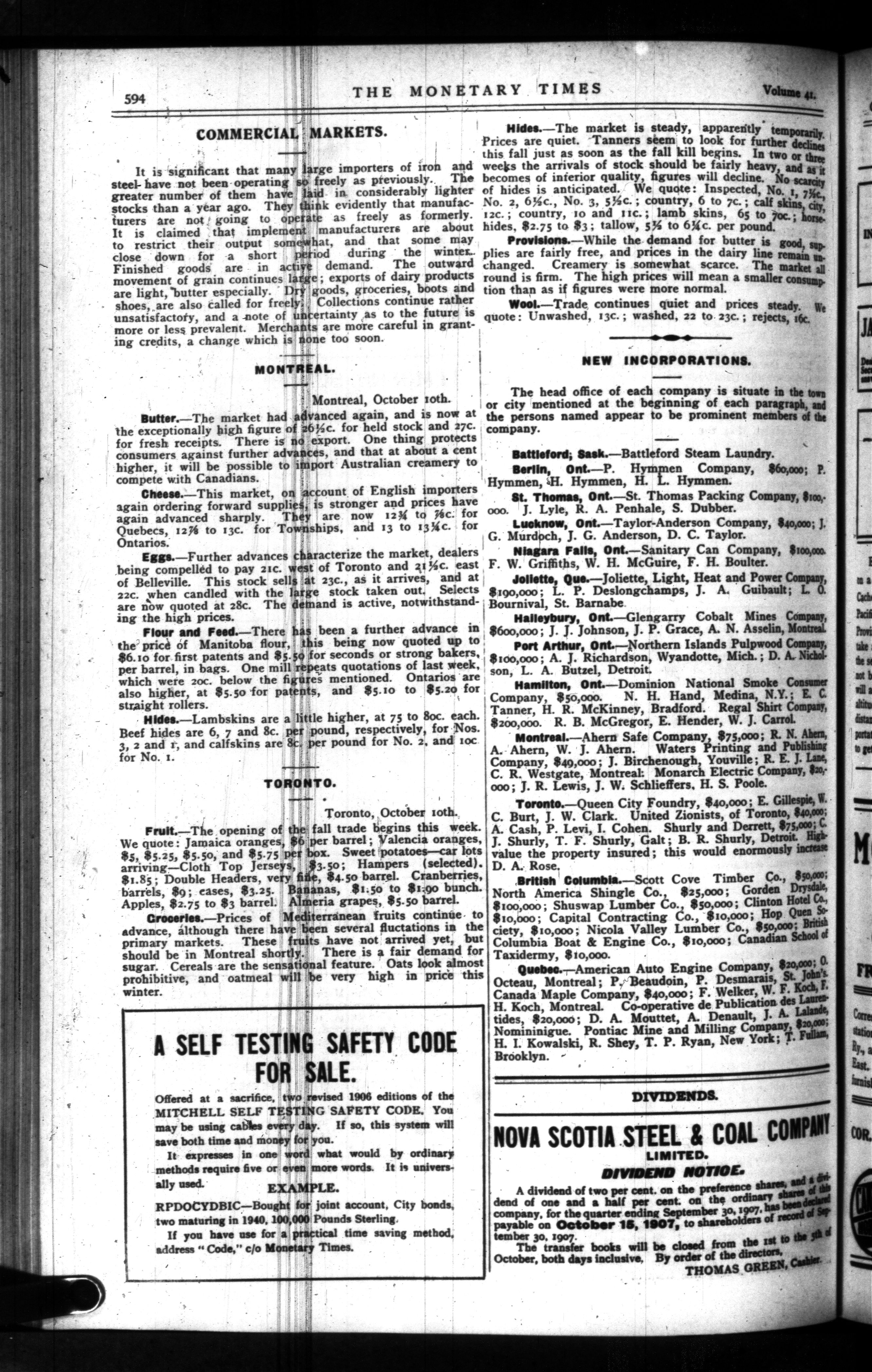 The monetary times, trade review and insurance chronicle : Vol. 41, No. 15 (Oct. 12, 1907)