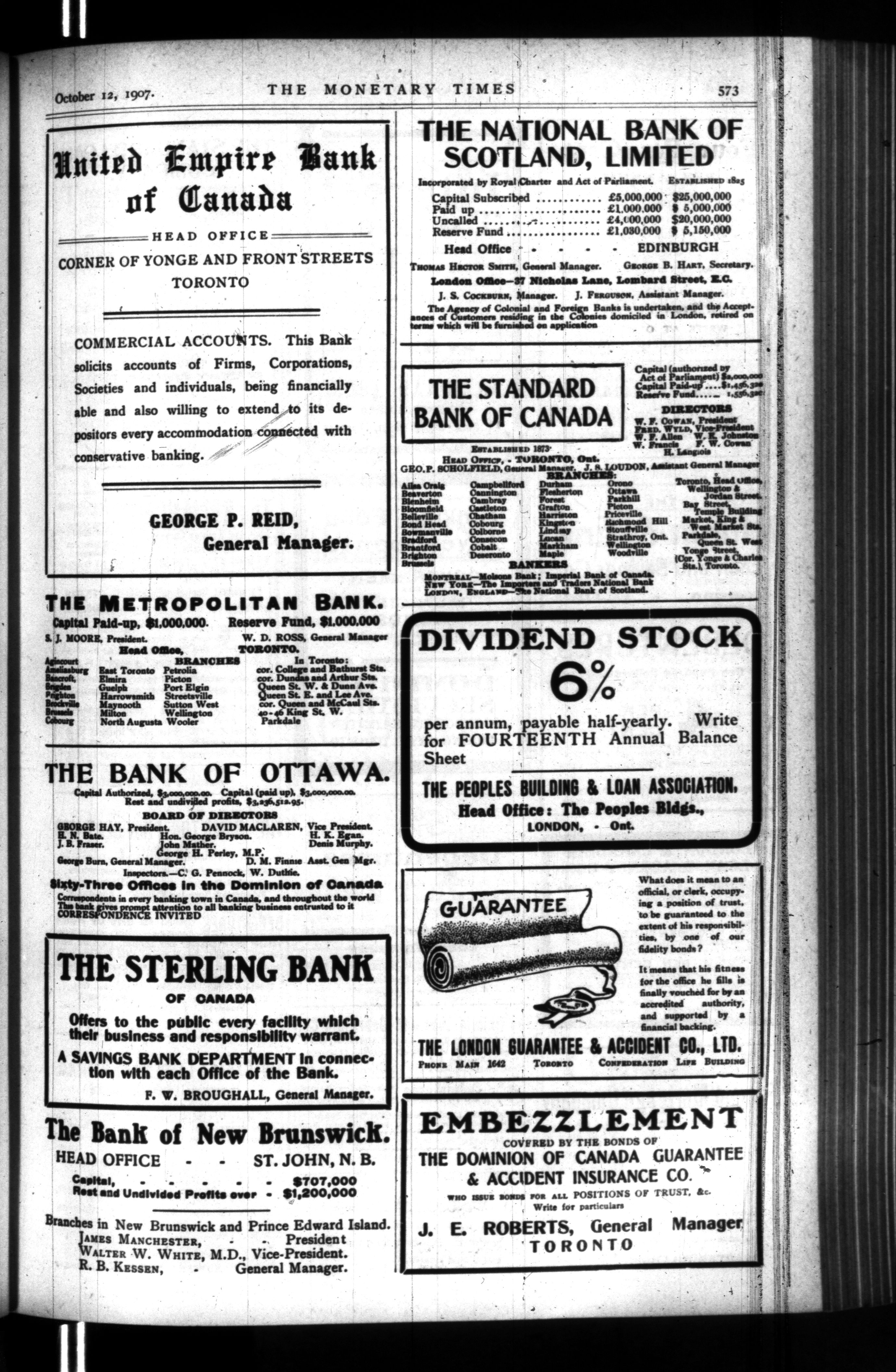 The monetary times, trade review and insurance chronicle : Vol. 41, No. 15 (Oct. 12, 1907)