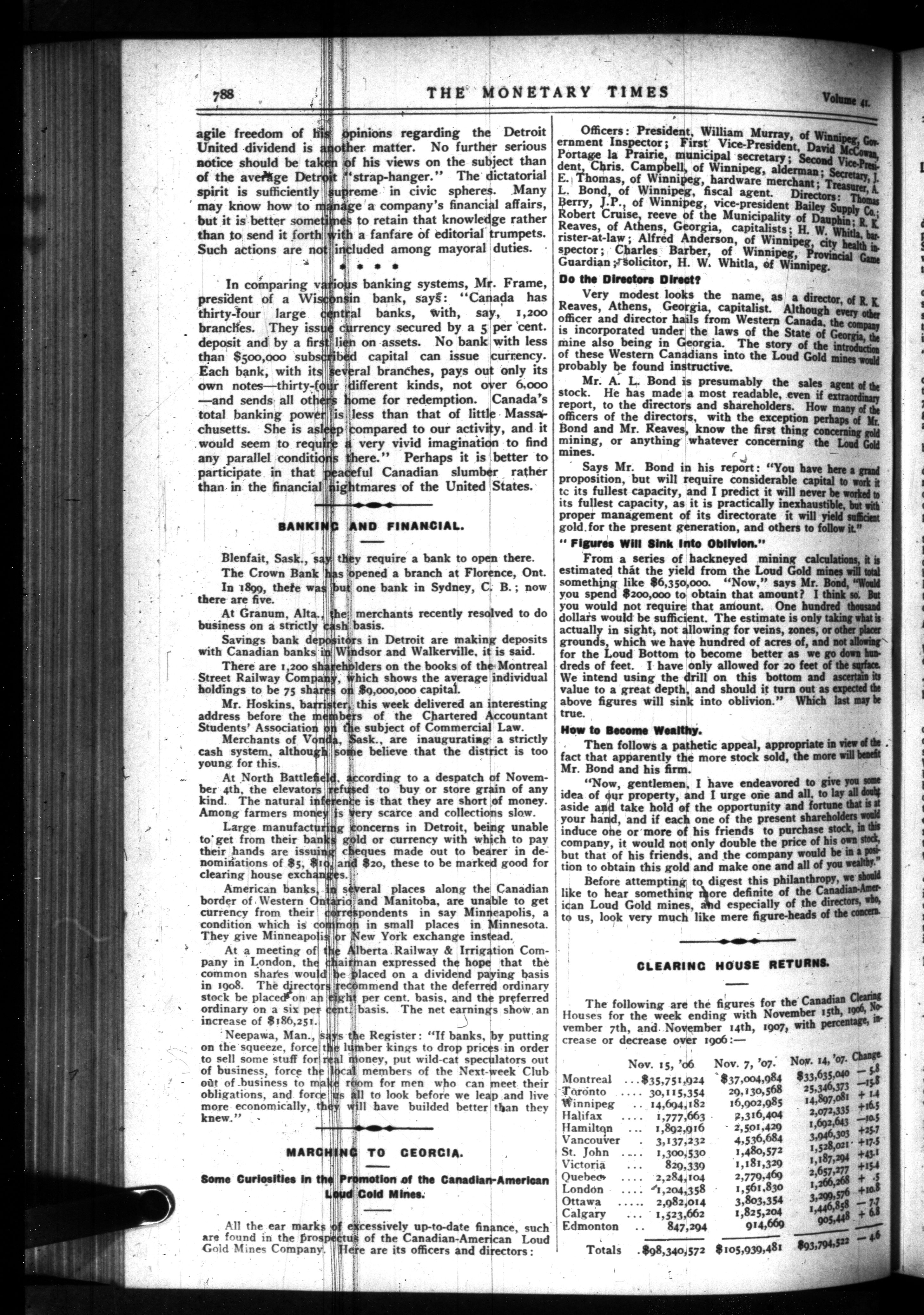 The monetary times, trade review and insurance chronicle : Vol. 41, No. 20 (Nov. 16, 1907)