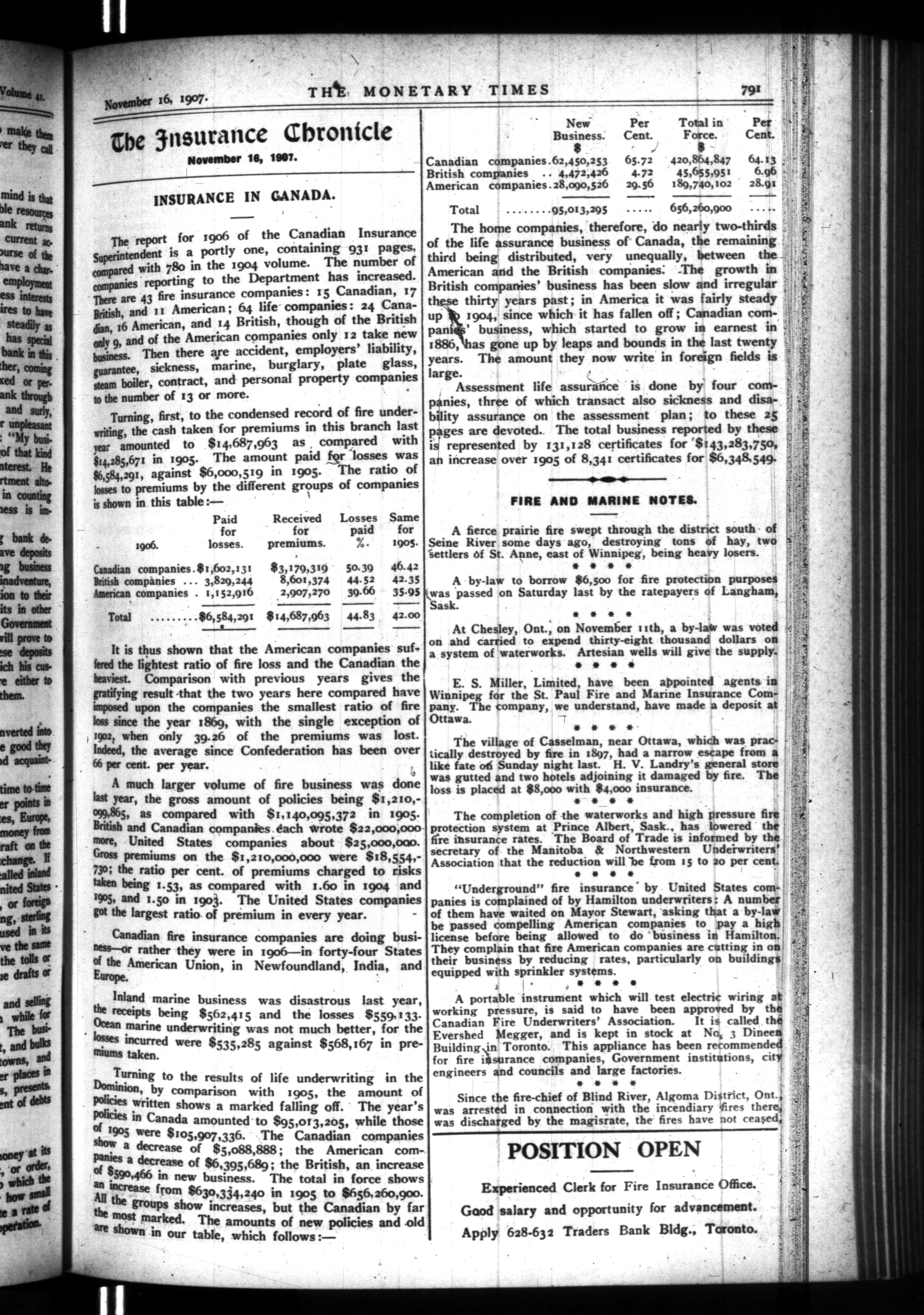 The monetary times, trade review and insurance chronicle : Vol. 41, No. 20 (Nov. 16, 1907)