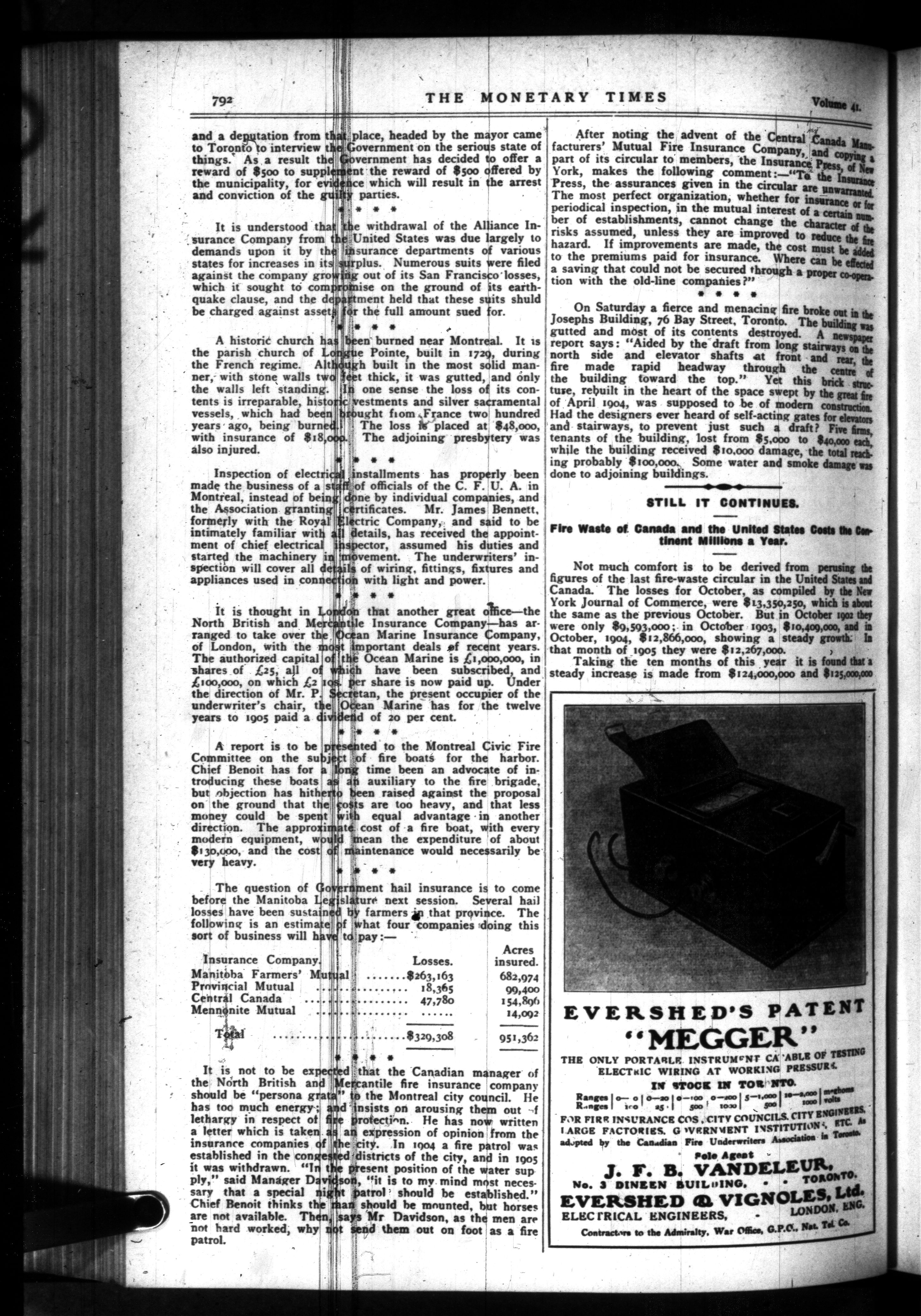 The monetary times, trade review and insurance chronicle : Vol. 41, No. 20 (Nov. 16, 1907)