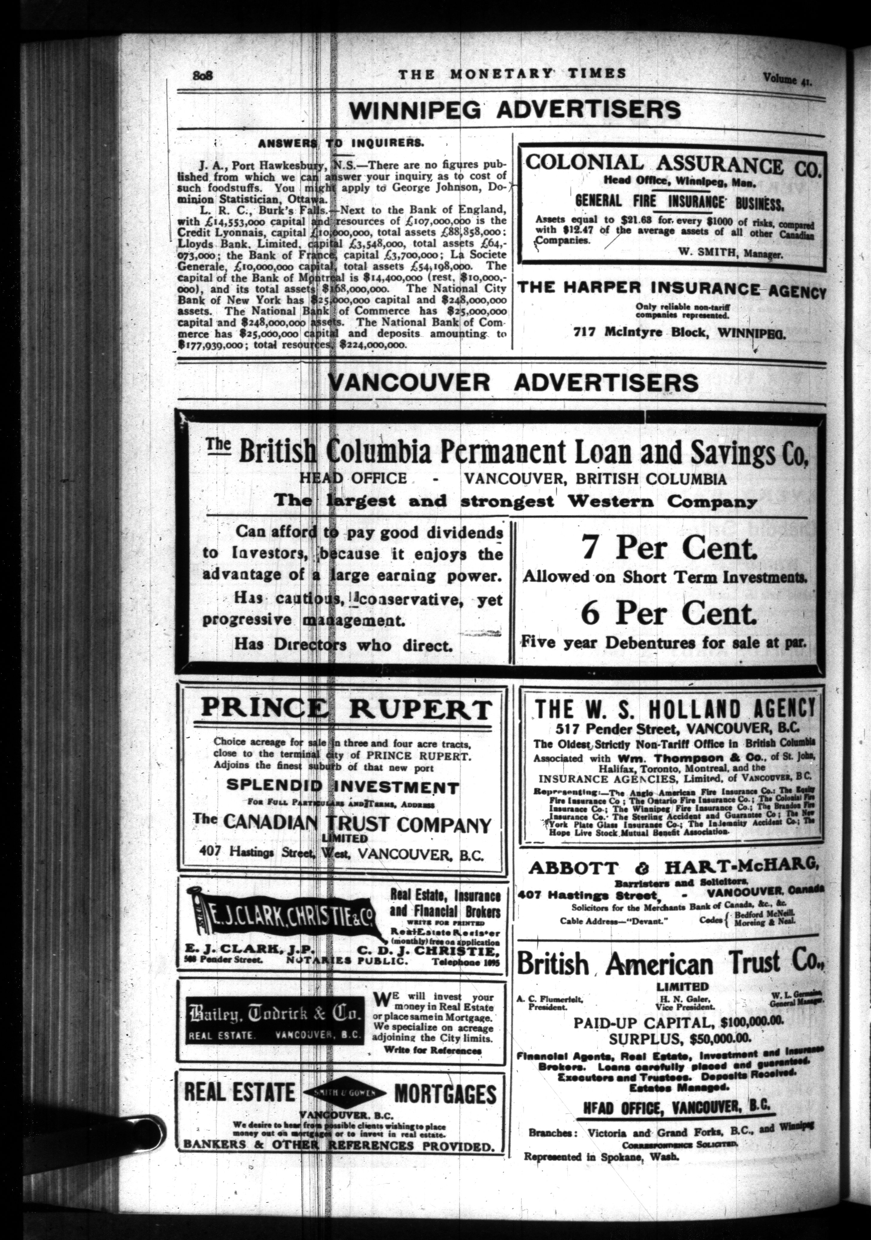 The monetary times, trade review and insurance chronicle : Vol. 41, No. 20 (Nov. 16, 1907)