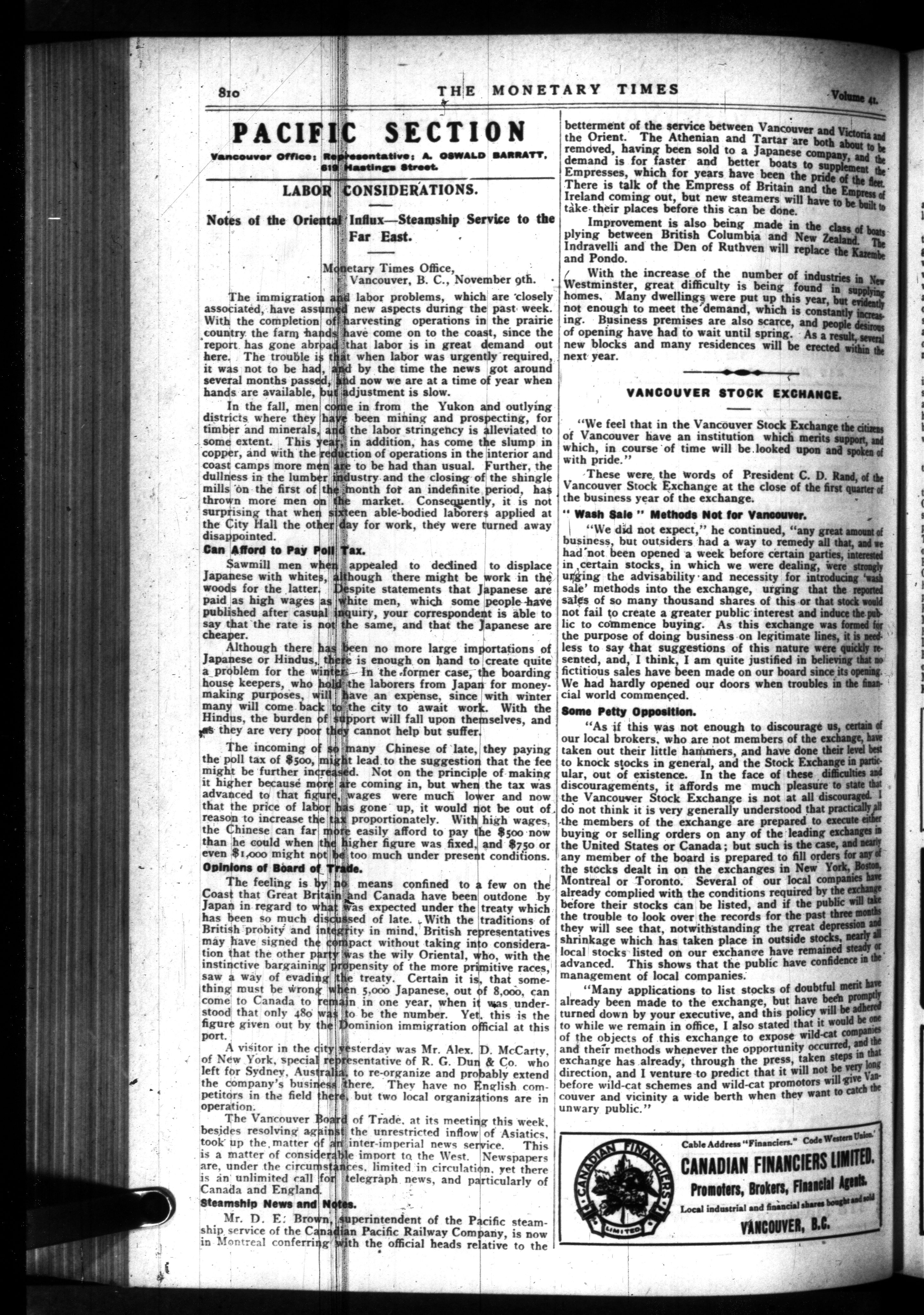 The monetary times, trade review and insurance chronicle : Vol. 41, No. 20 (Nov. 16, 1907)