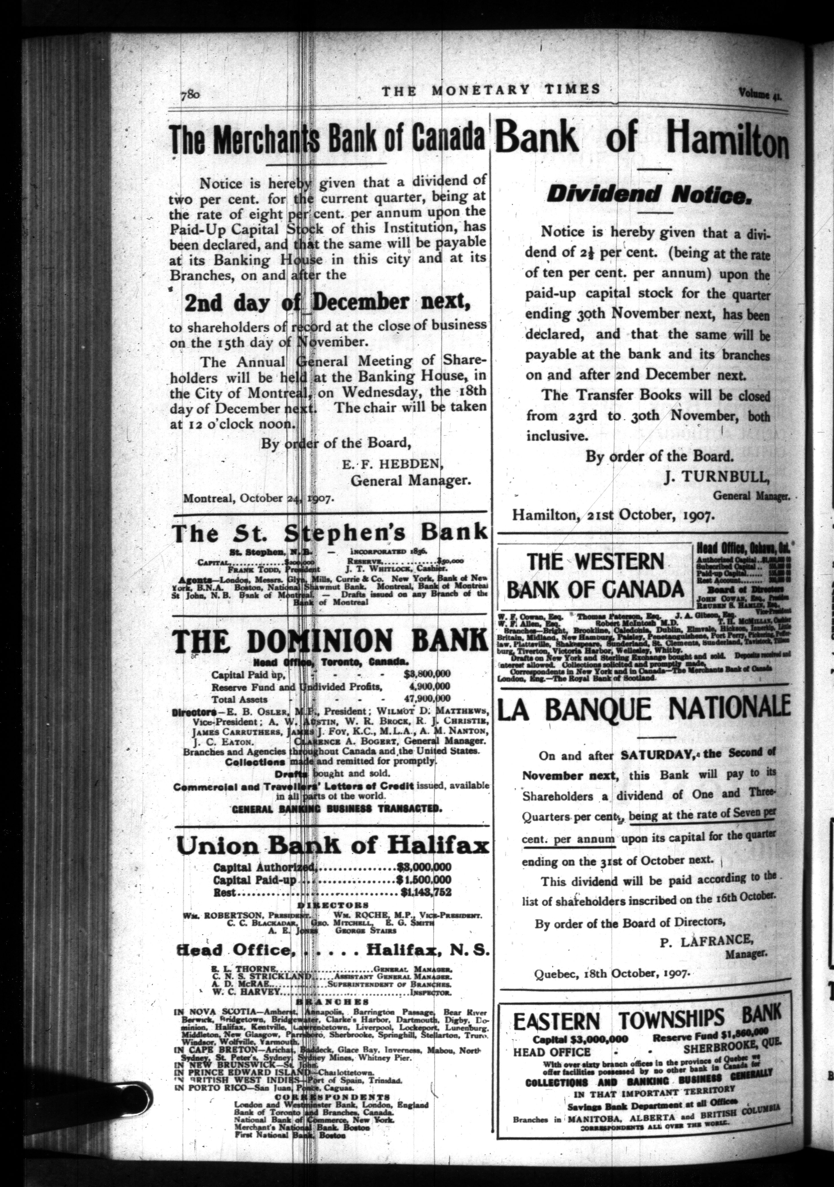 The monetary times, trade review and insurance chronicle : Vol. 41, No. 20 (Nov. 16, 1907)
