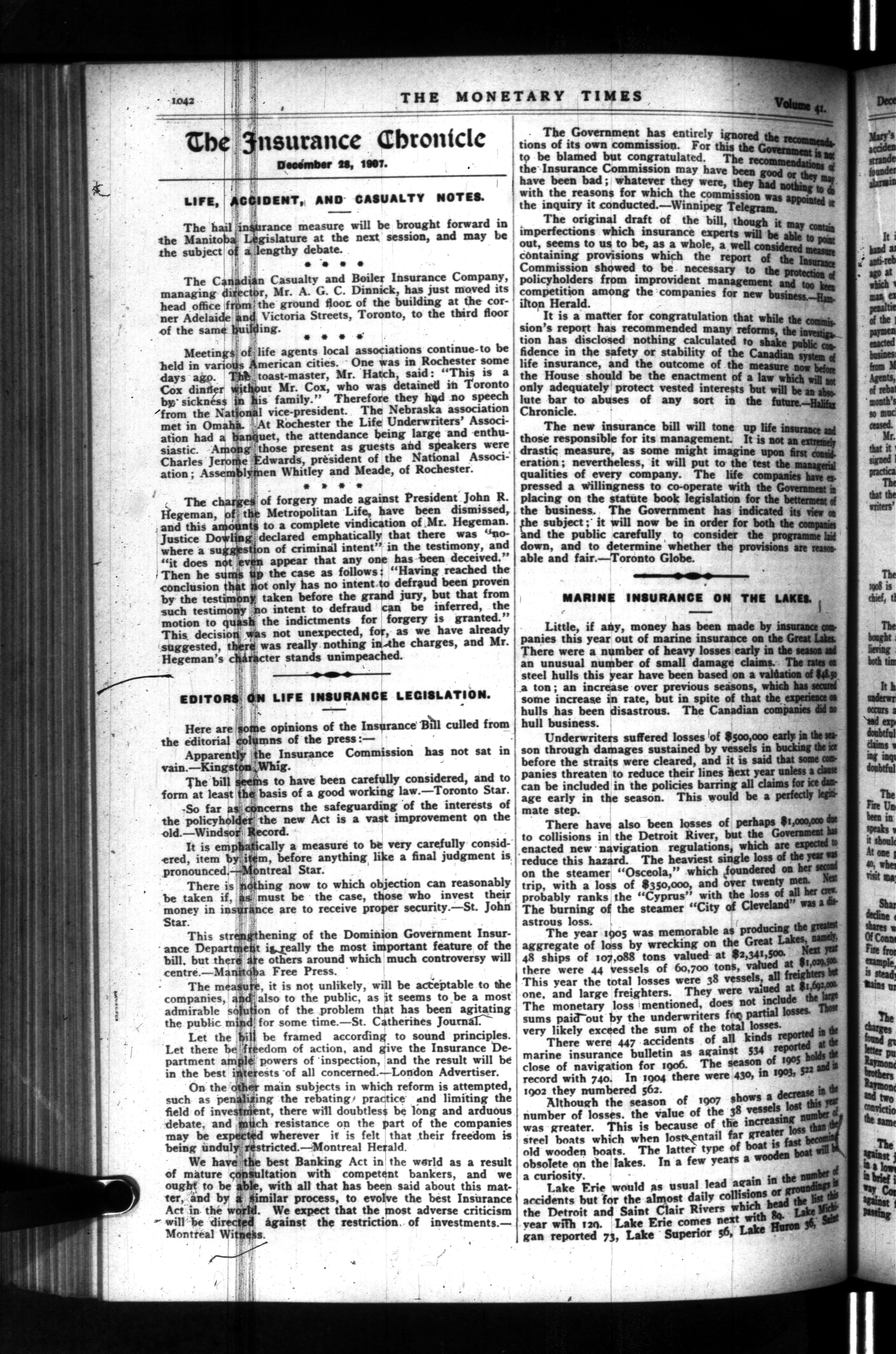 The monetary times, trade review and insurance chronicle : Vol. 41, No. 26 (Dec. 28, 1907)