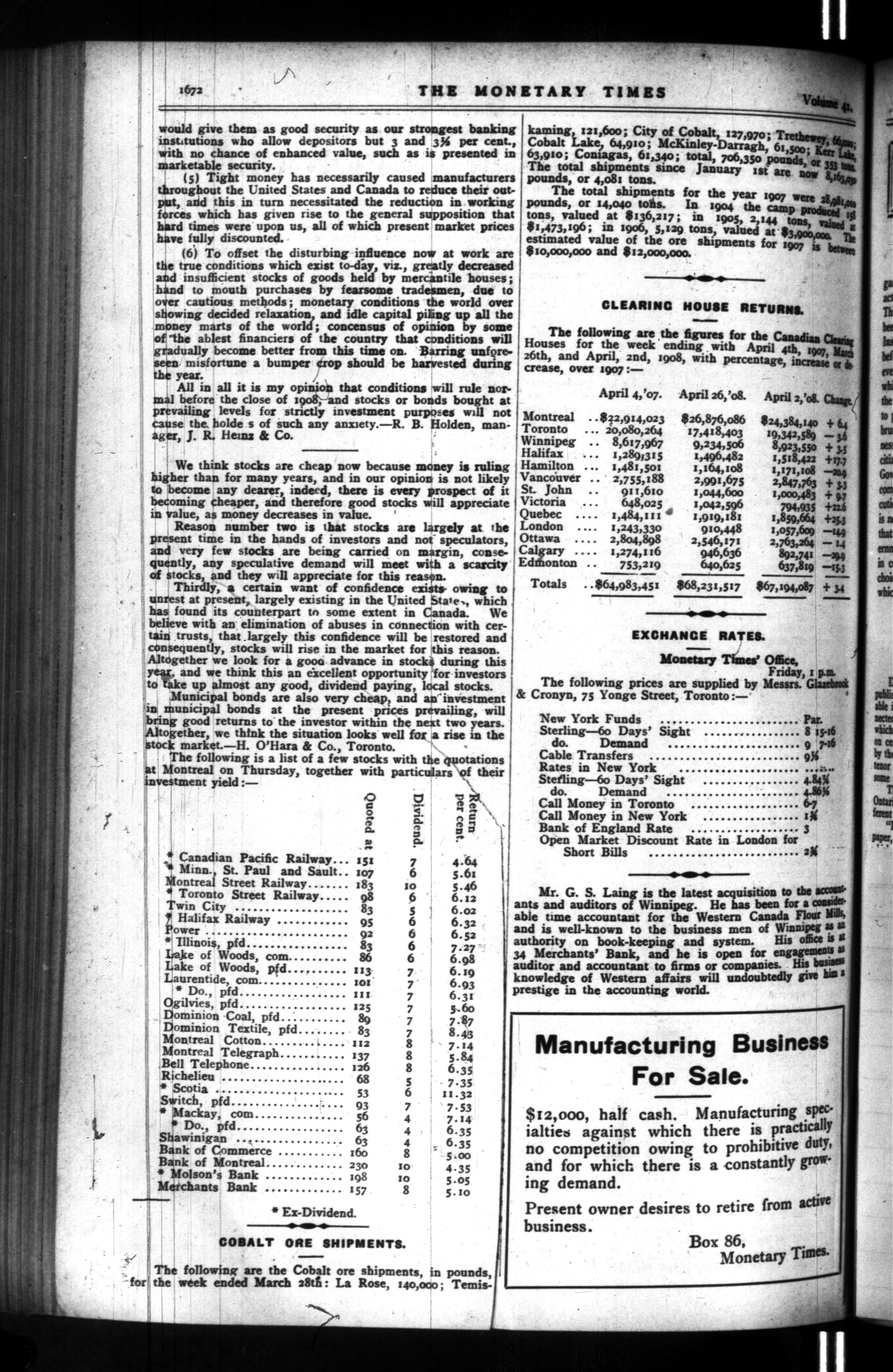 The monetary times, trade review and insurance chronicle : Vol. 41, No. 40 (April 4, 1908)