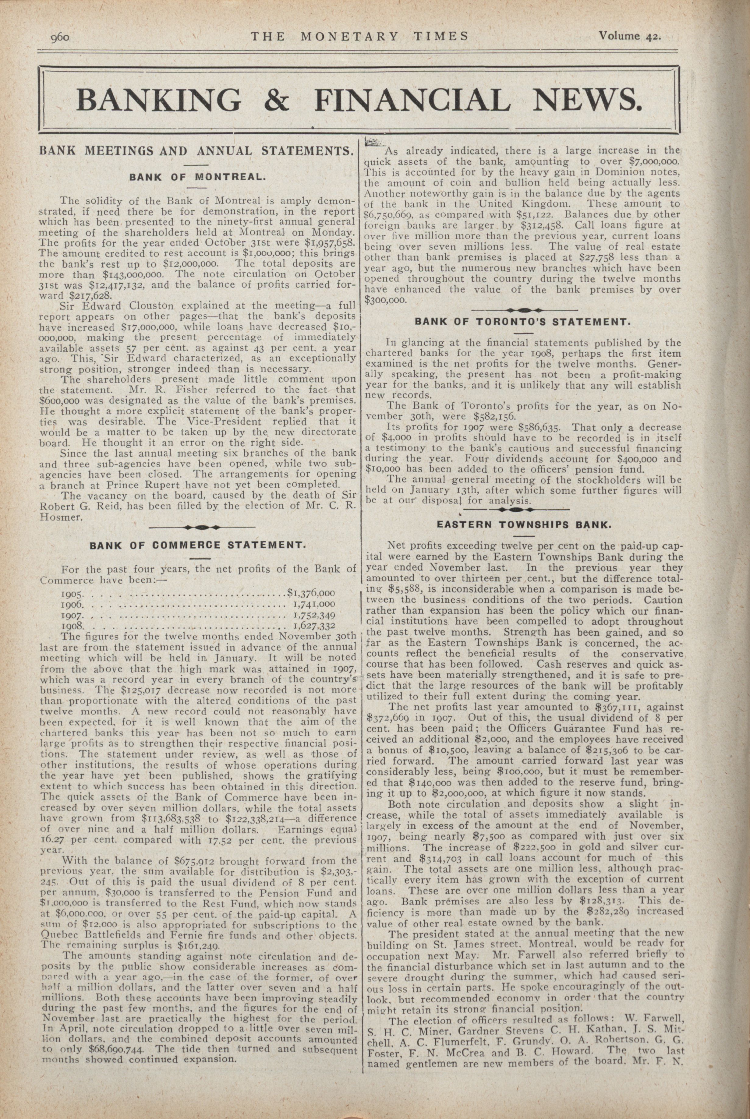 - The Monetary Times, trade review and insurance chronicle. : Vol. 42 No. 24. (December 12th, 1908.)