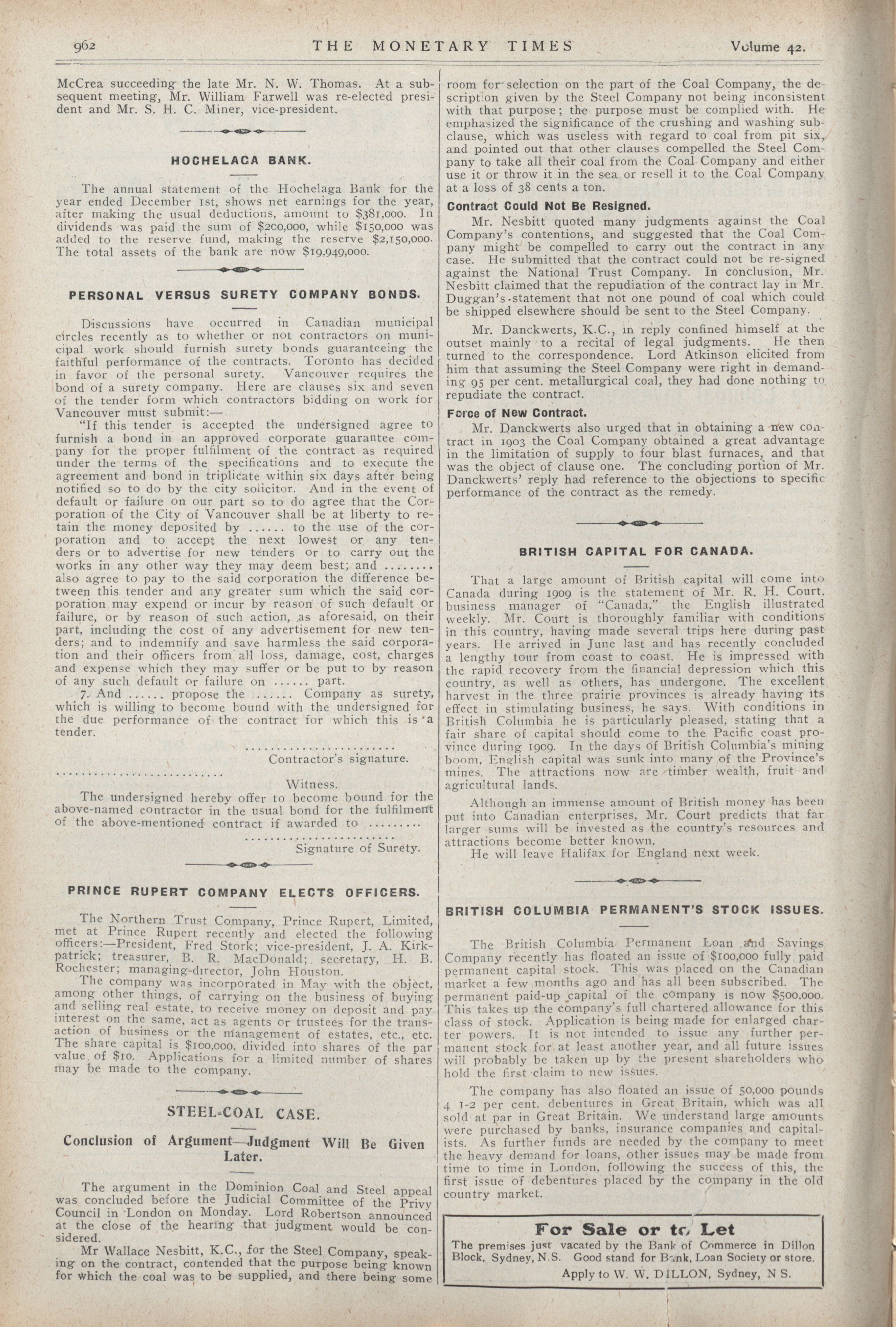 - The Monetary Times, trade review and insurance chronicle. : Vol. 42 No. 24. (December 12th, 1908.)