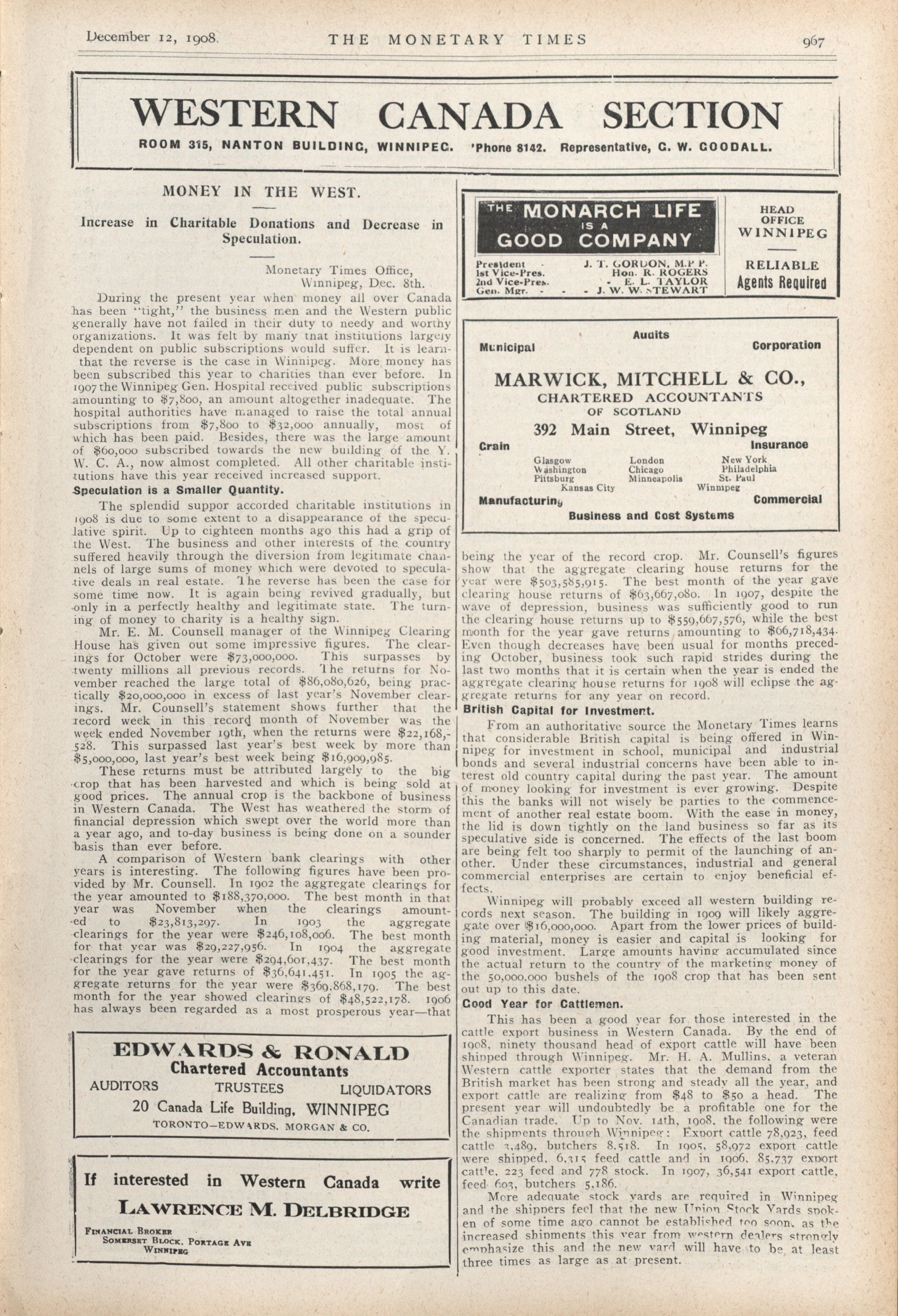 - The Monetary Times, trade review and insurance chronicle. : Vol. 42 No. 24. (December 12th, 1908.)