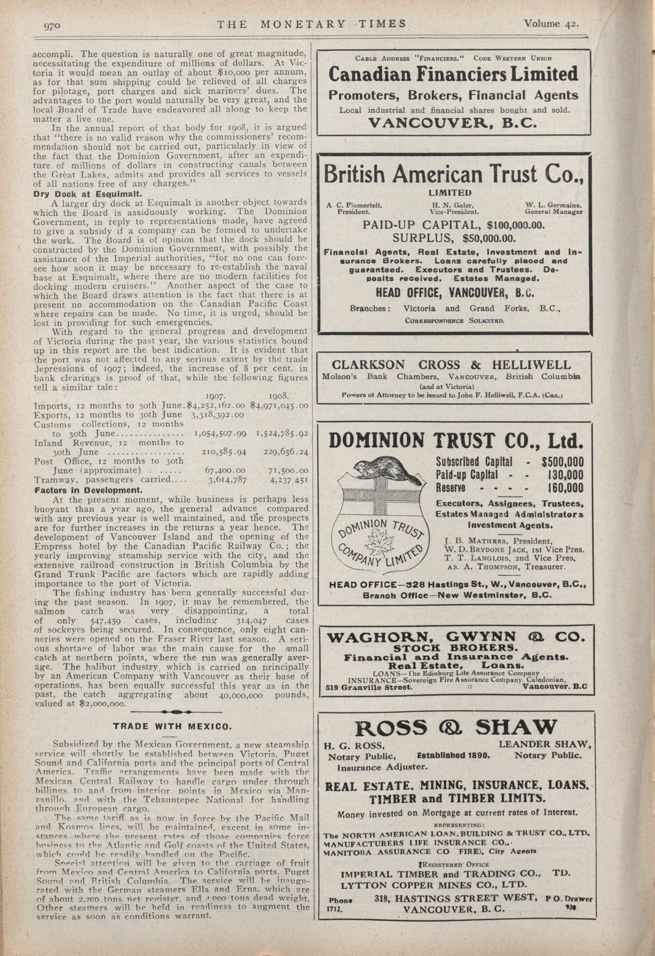 - The Monetary Times, trade review and insurance chronicle. : Vol. 42 No. 24. (December 12th, 1908.)