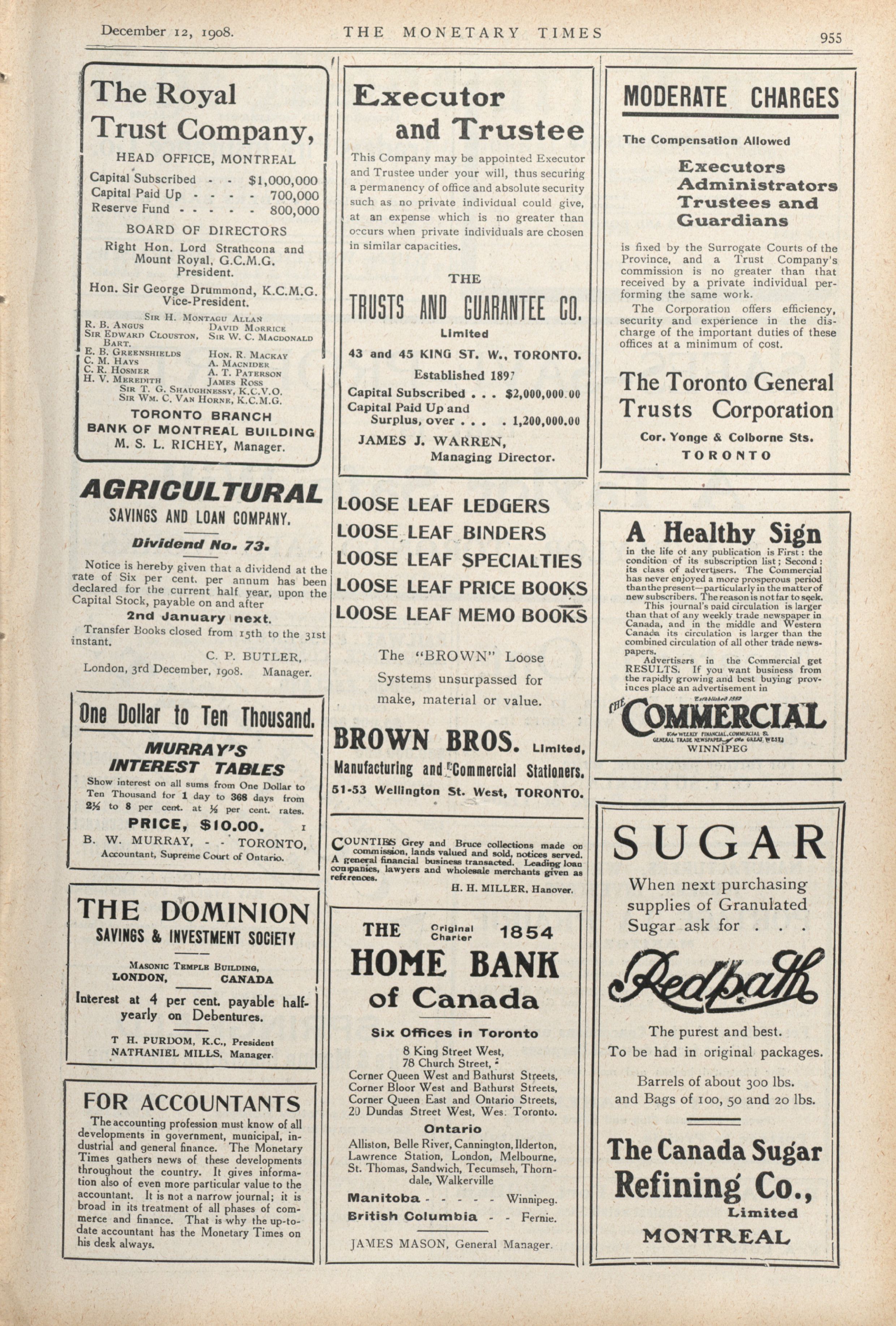 - The Monetary Times, trade review and insurance chronicle. : Vol. 42 No. 24. (December 12th, 1908.)