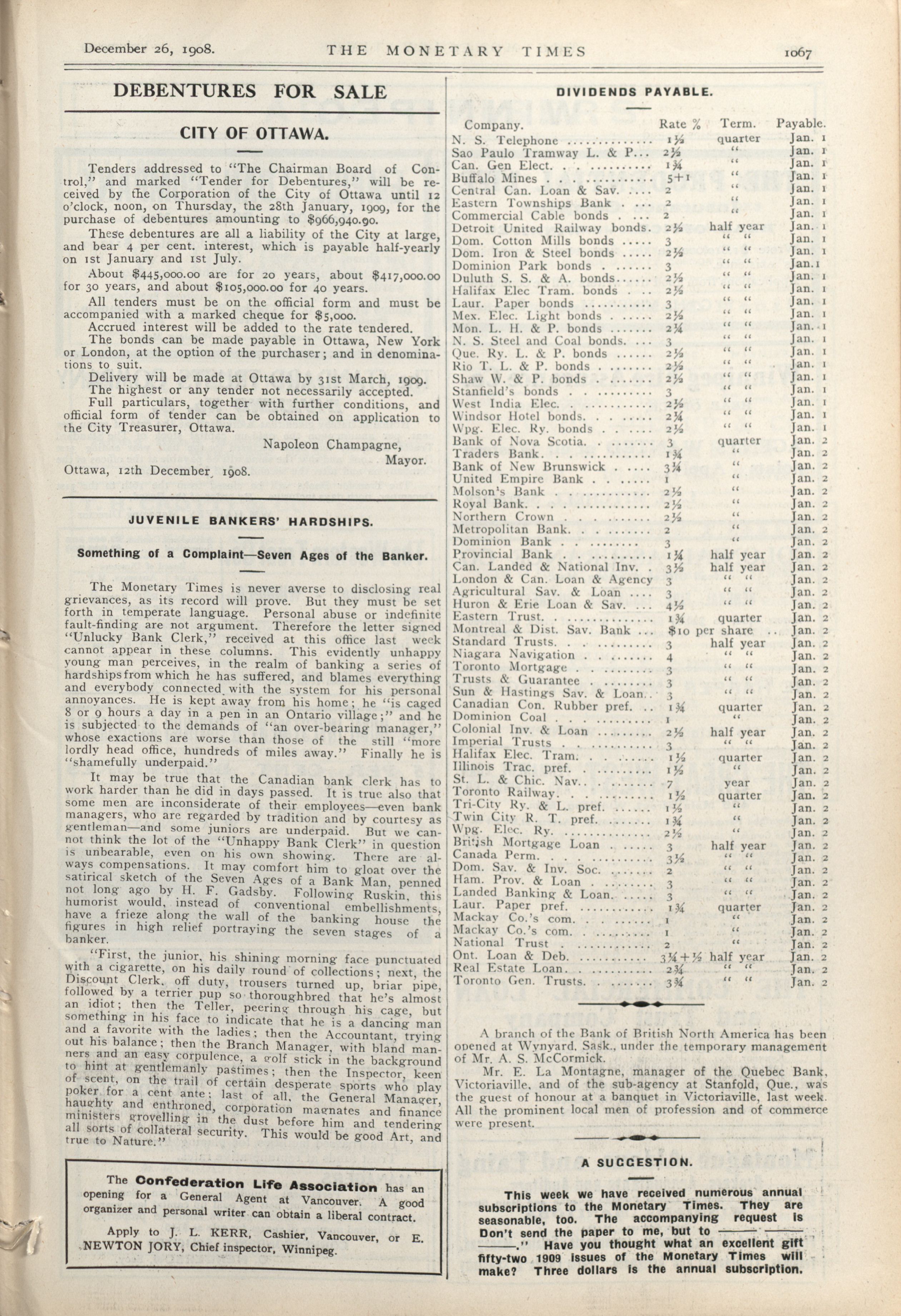 - The Monetary Times, trade review and insurance chronicle. : Vol. 42 No. 26. (December 26th, 1908.)