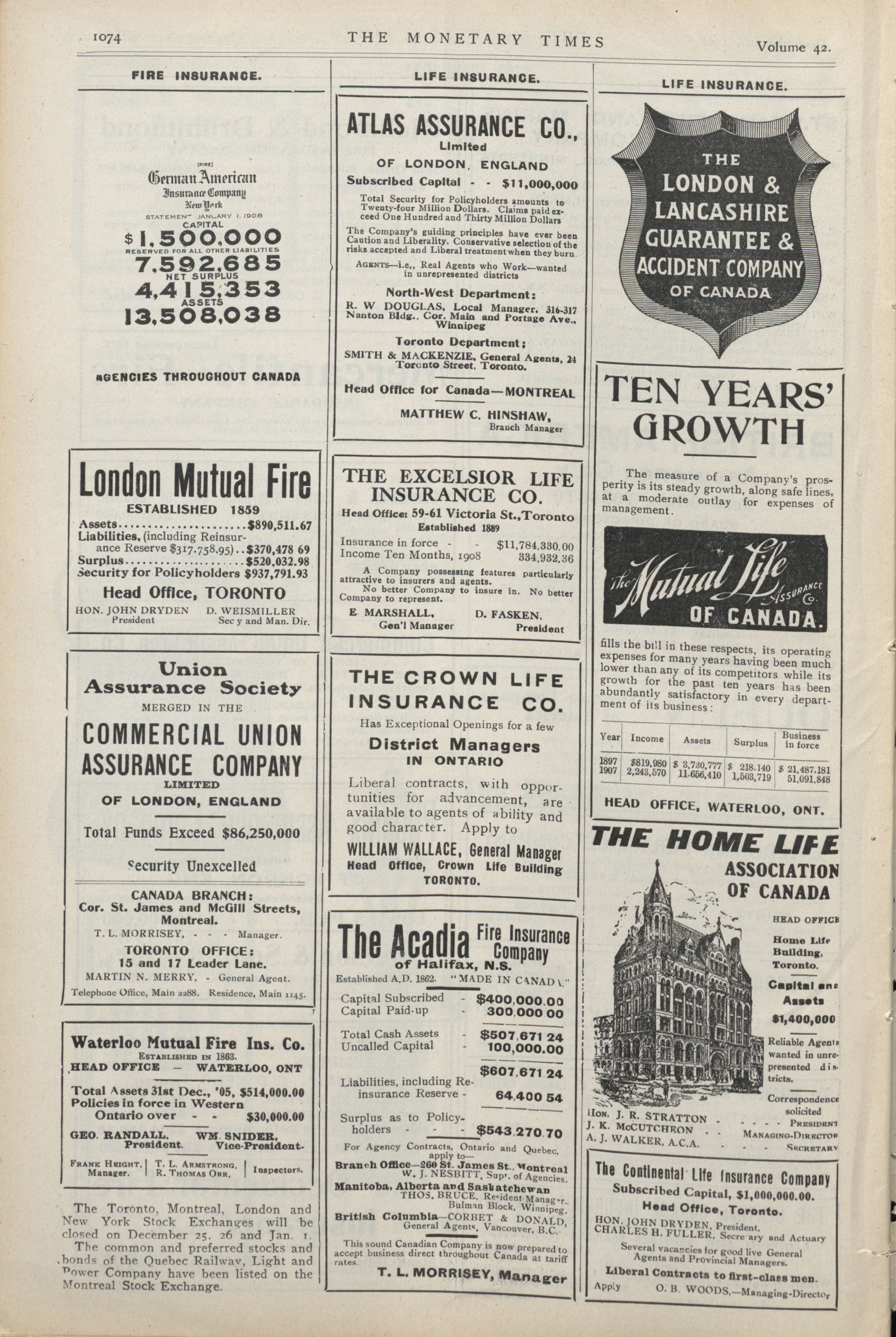 - The Monetary Times, trade review and insurance chronicle. : Vol. 42 No. 26. (December 26th, 1908.)