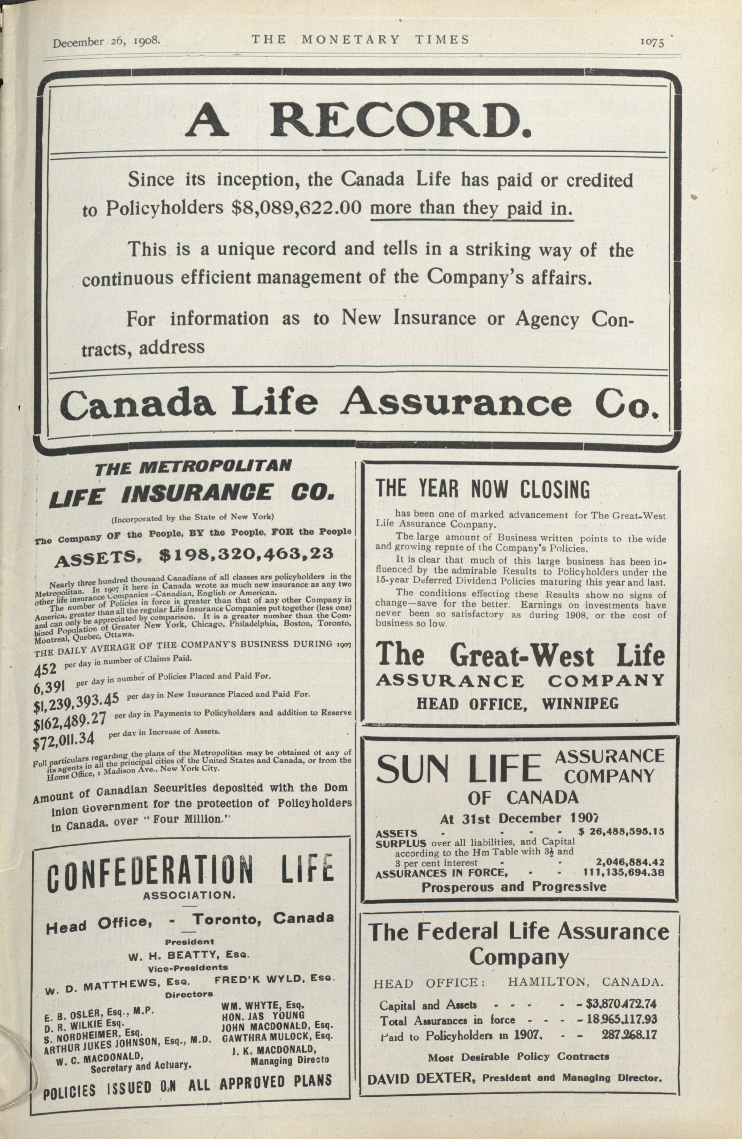 The Monetary Times, trade review and insurance chronicle. : Vol. 42 No. 26. (December 26th, 1908.)