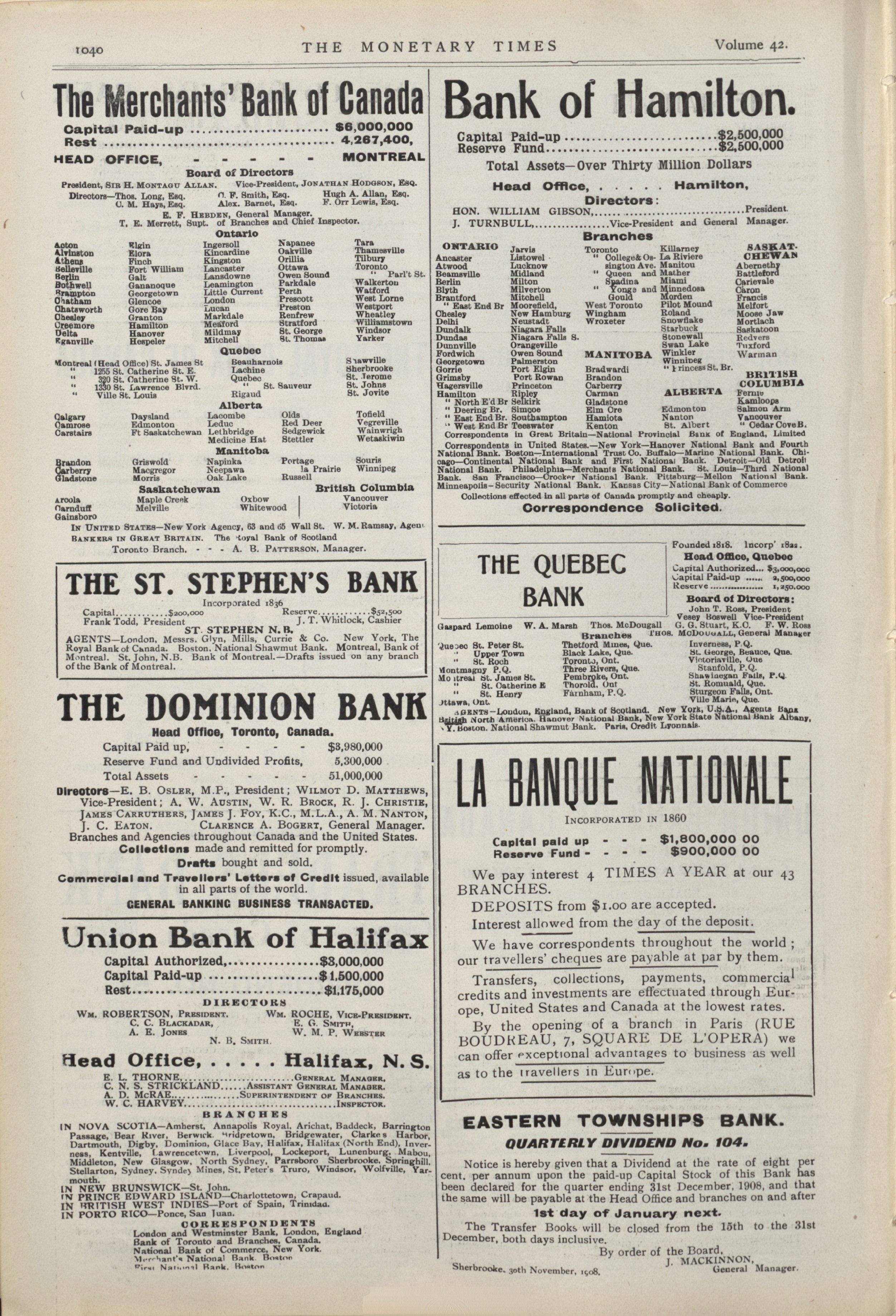 - The Monetary Times, trade review and insurance chronicle. : Vol. 42 No. 26. (December 26th, 1908.)