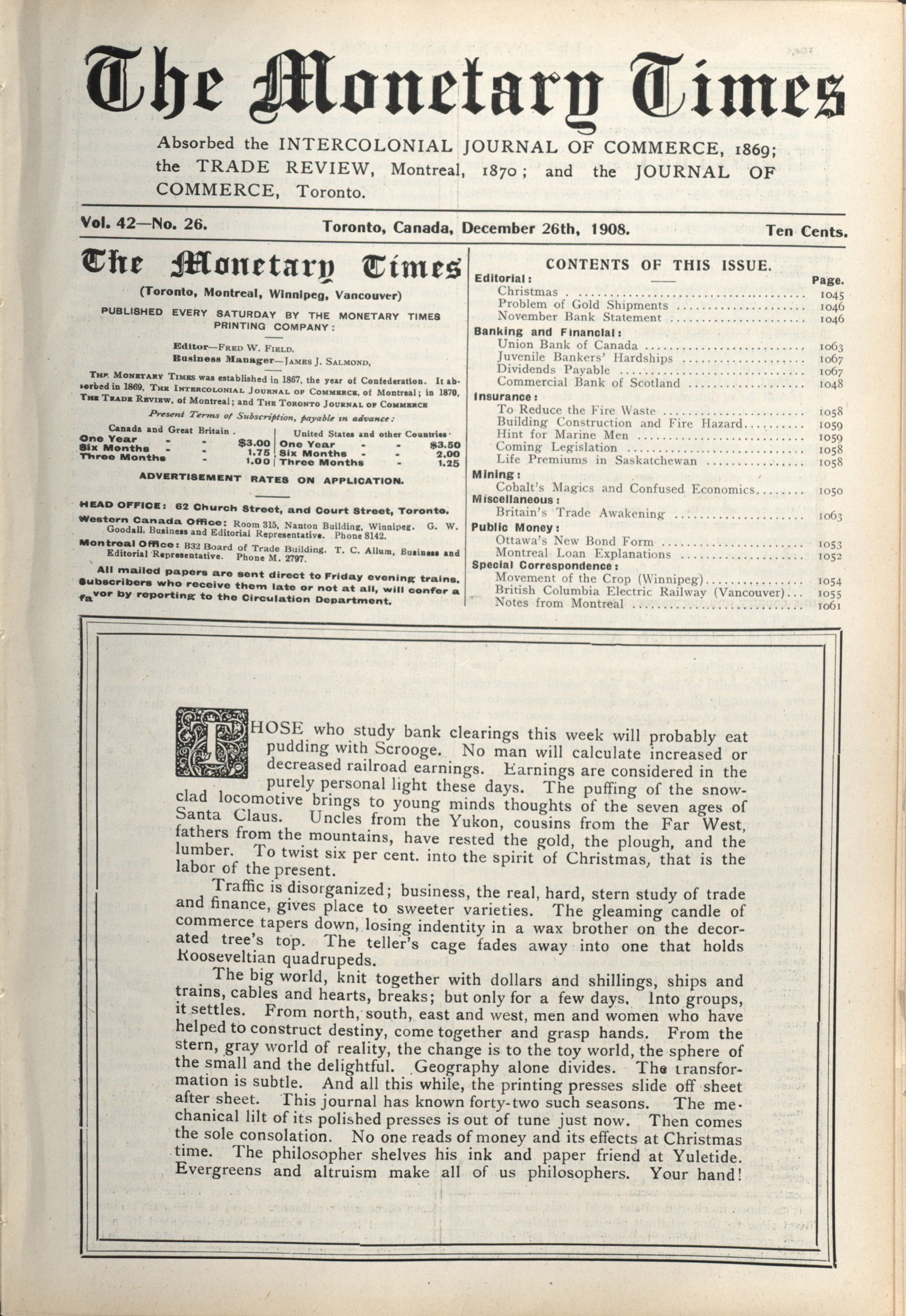 - The Monetary Times, trade review and insurance chronicle. : Vol. 42 No. 26. (December 26th, 1908.)