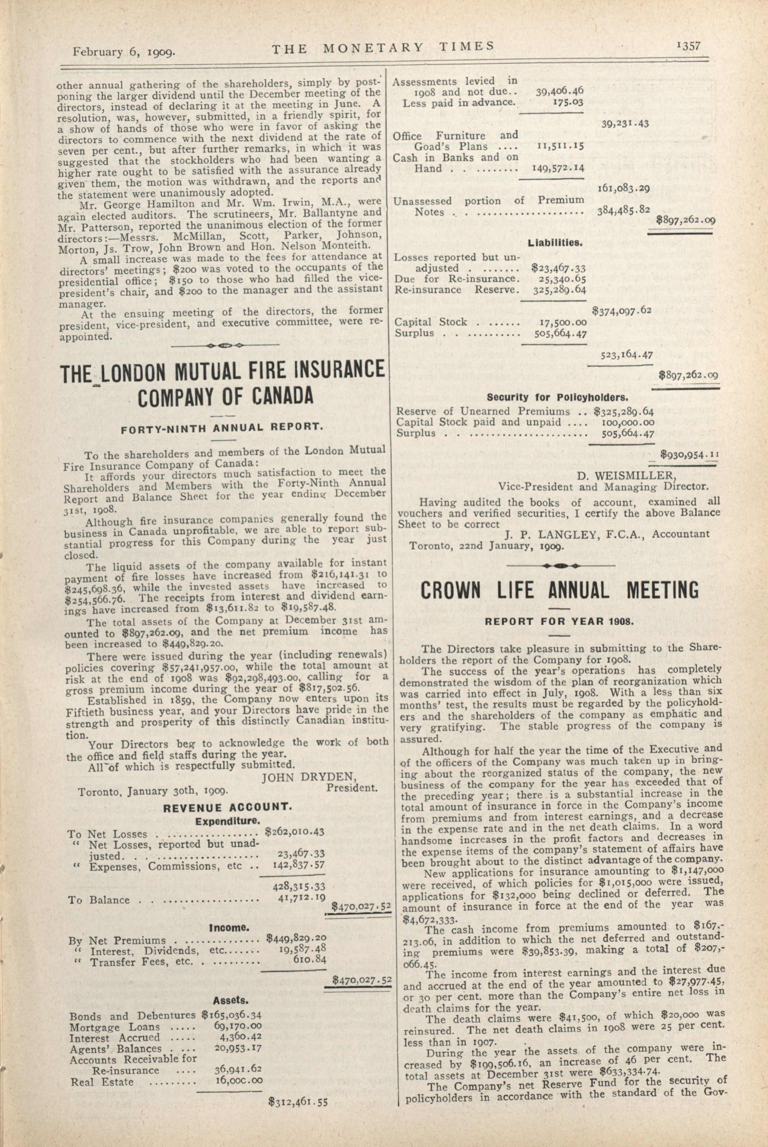 - The Monetary Times, trade review and insurance chronicle. : Vol. 42 No. 32. (February 6th, 1909.)