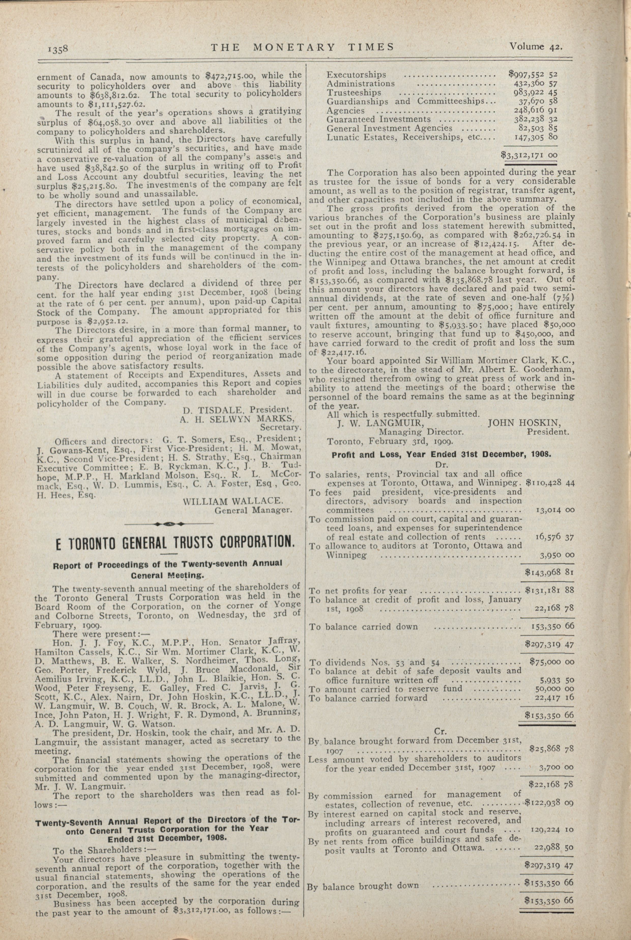 The Monetary Times, trade review and insurance chronicle. : Vol. 42 No. 32. (February 6th, 1909.)