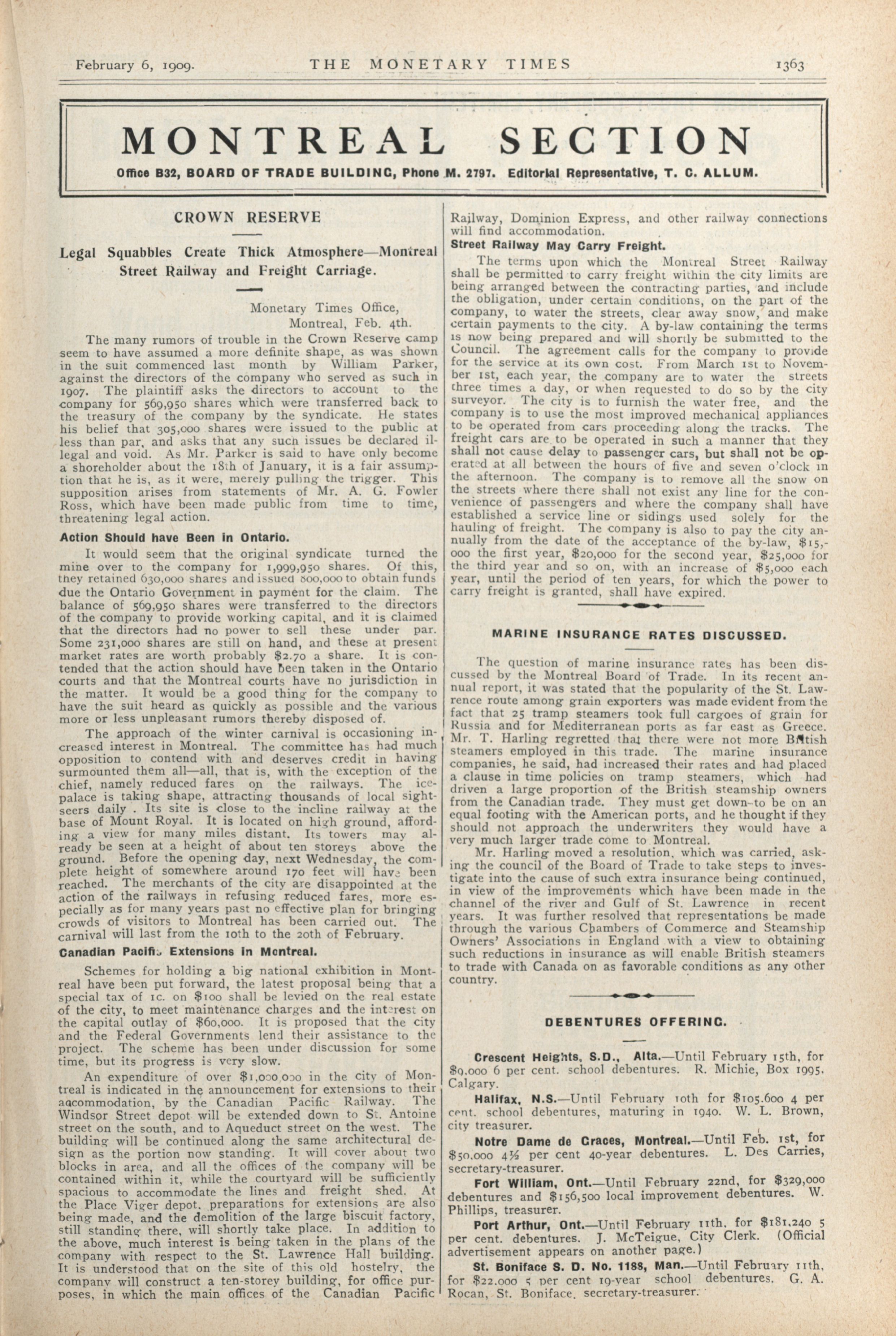 - The Monetary Times, trade review and insurance chronicle. : Vol. 42 No. 32. (February 6th, 1909.)
