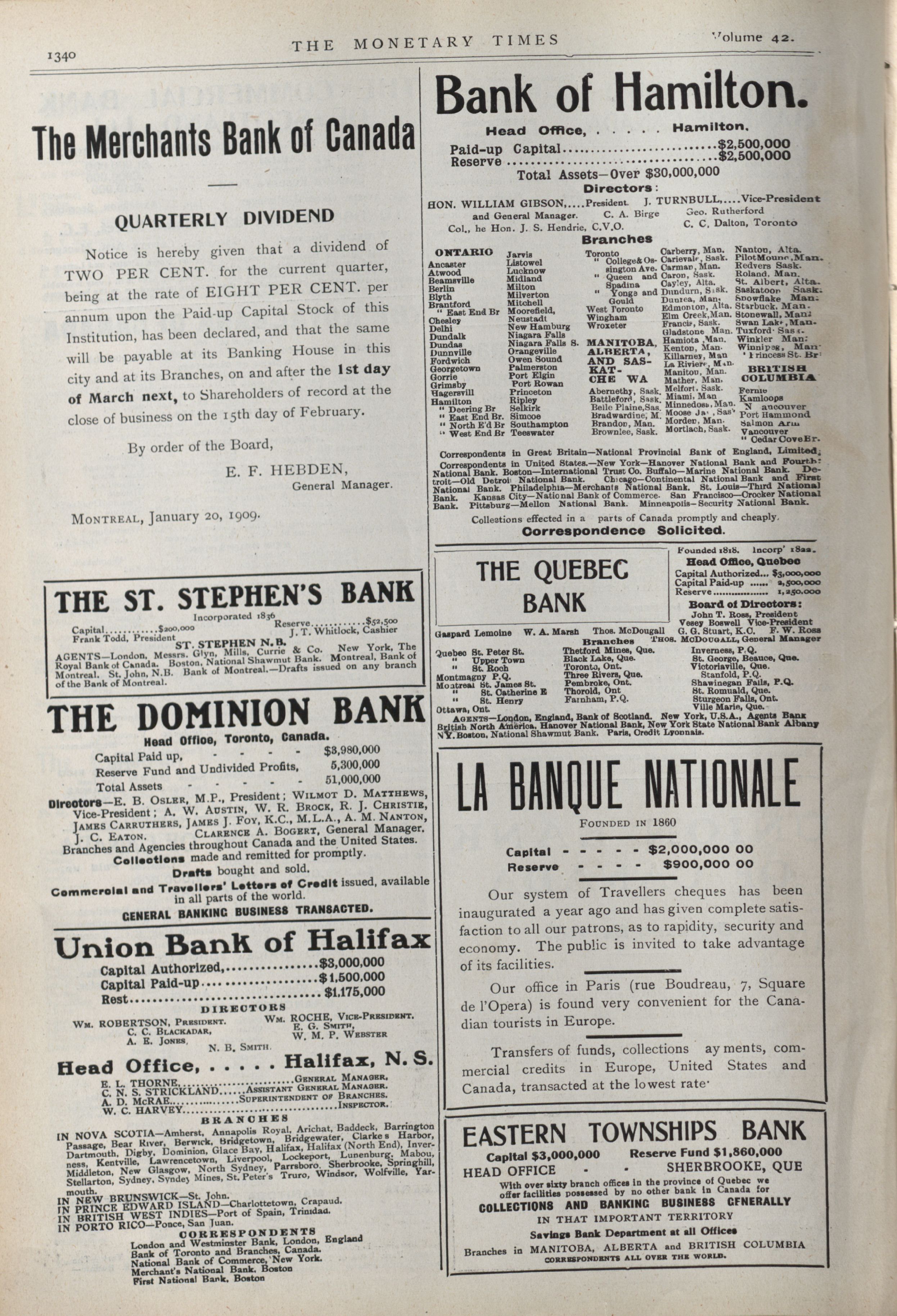 - The Monetary Times, trade review and insurance chronicle. : Vol. 42 No. 32. (February 6th, 1909.)