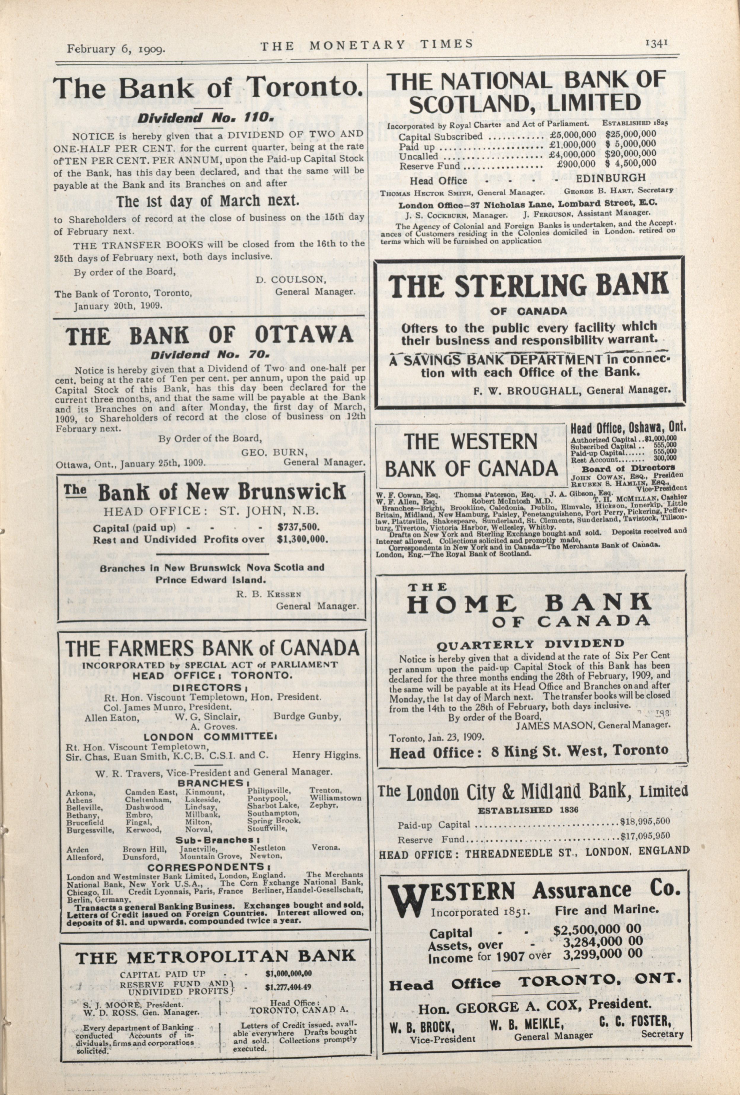 - The Monetary Times, trade review and insurance chronicle. : Vol. 42 No. 32. (February 6th, 1909.)