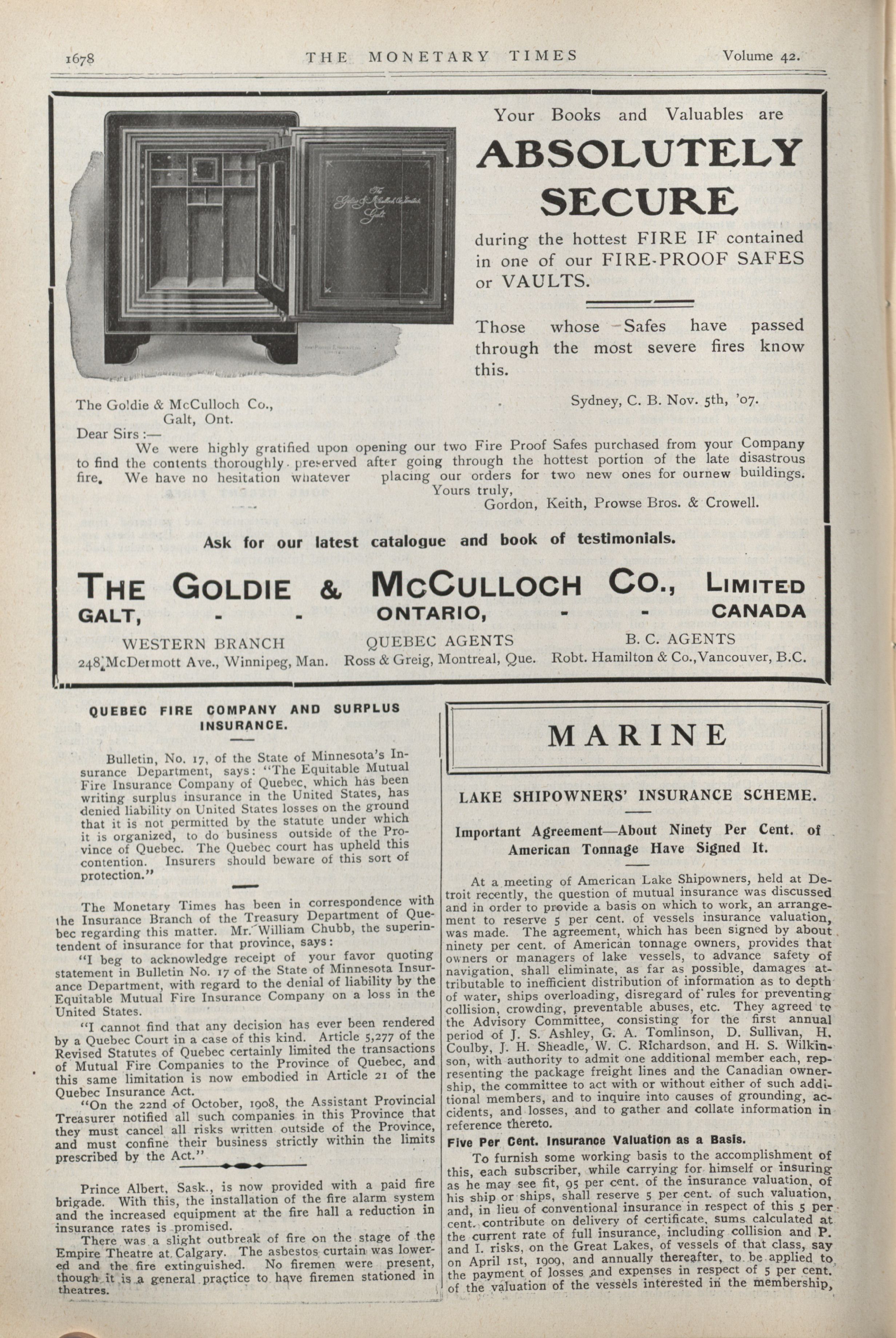 The Monetary Times, trade review and insurance chronicle. : Vol. 42 No. 38. (March 20th, 1909.)