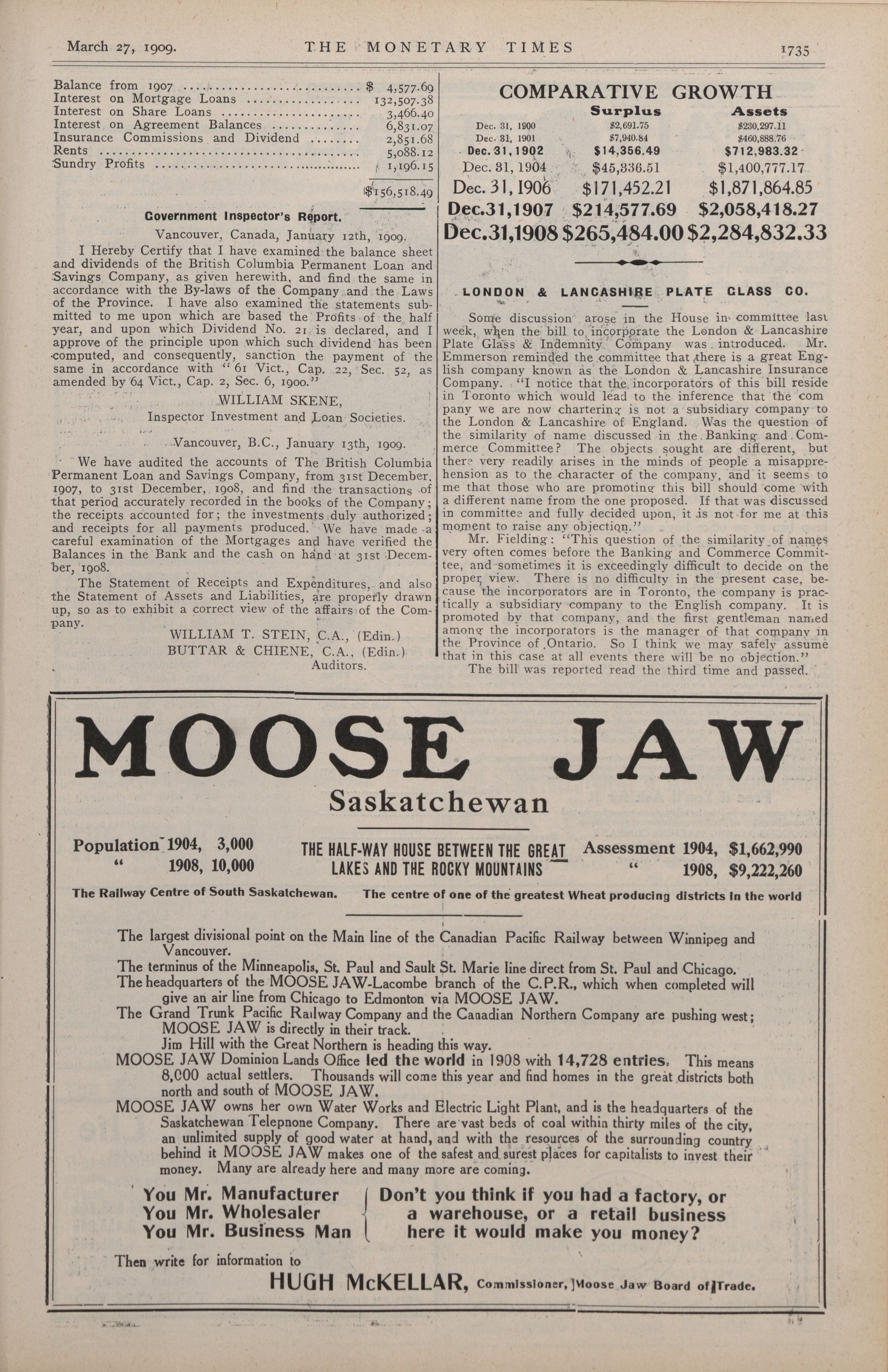- The Monetary Times, trade review and insurance chronicle. : Vol. 42 No. 39. (March 27th, 1909.)