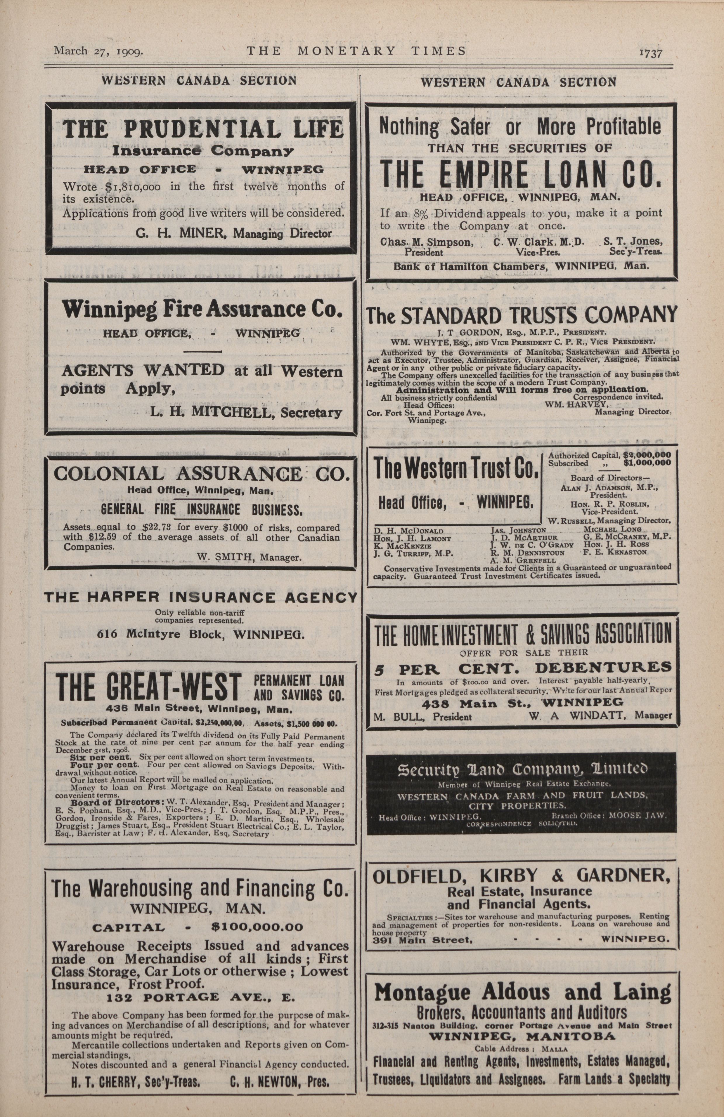 - The Monetary Times, trade review and insurance chronicle. : Vol. 42 No. 39. (March 27th, 1909.)