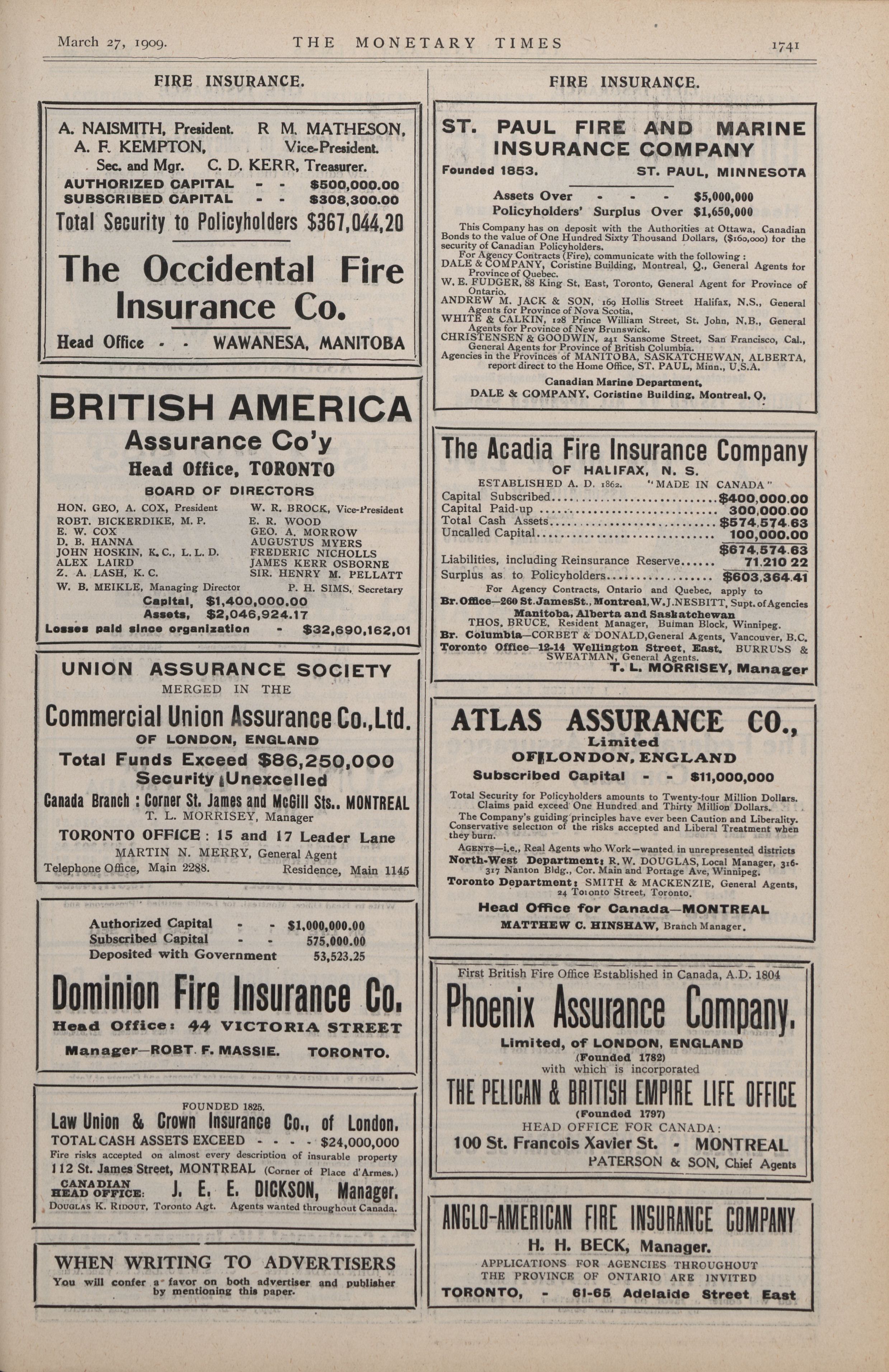 - The Monetary Times, trade review and insurance chronicle. : Vol. 42 No. 39. (March 27th, 1909.)