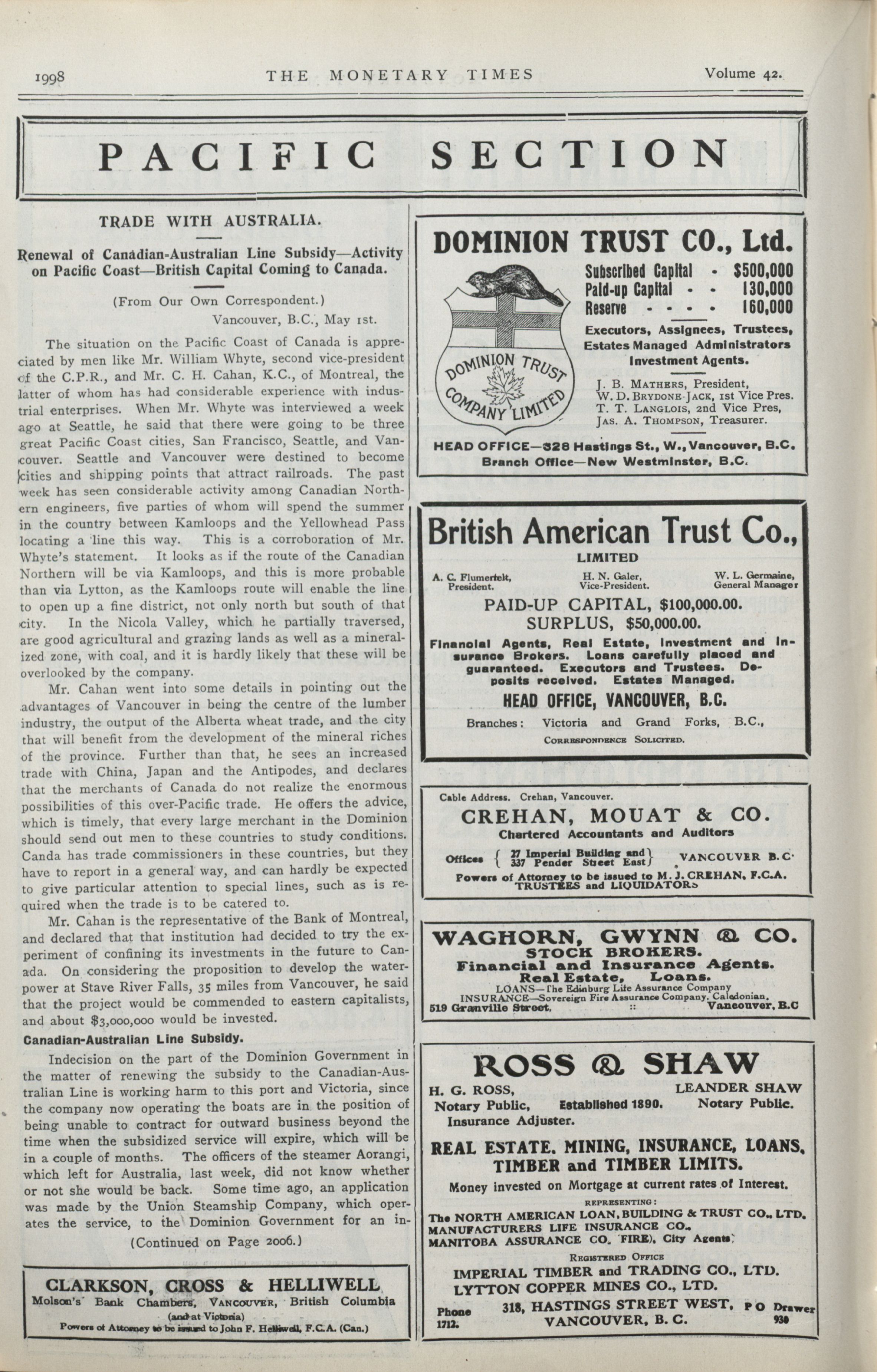 The monetary times, trade review and insurance chronicle : Vol. 42 No. 45. (May 8th, 1909.)