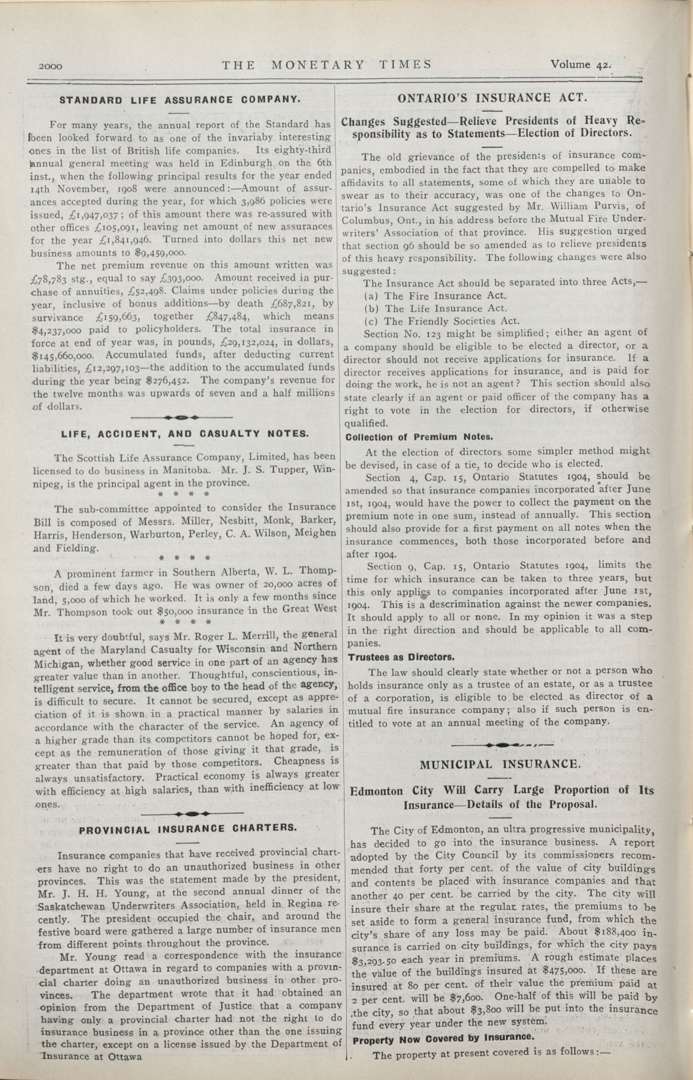 - The Monetary Times, trade review and insurance chronicle. : Vol. 42 No. 45. (May 8th, 1909.)