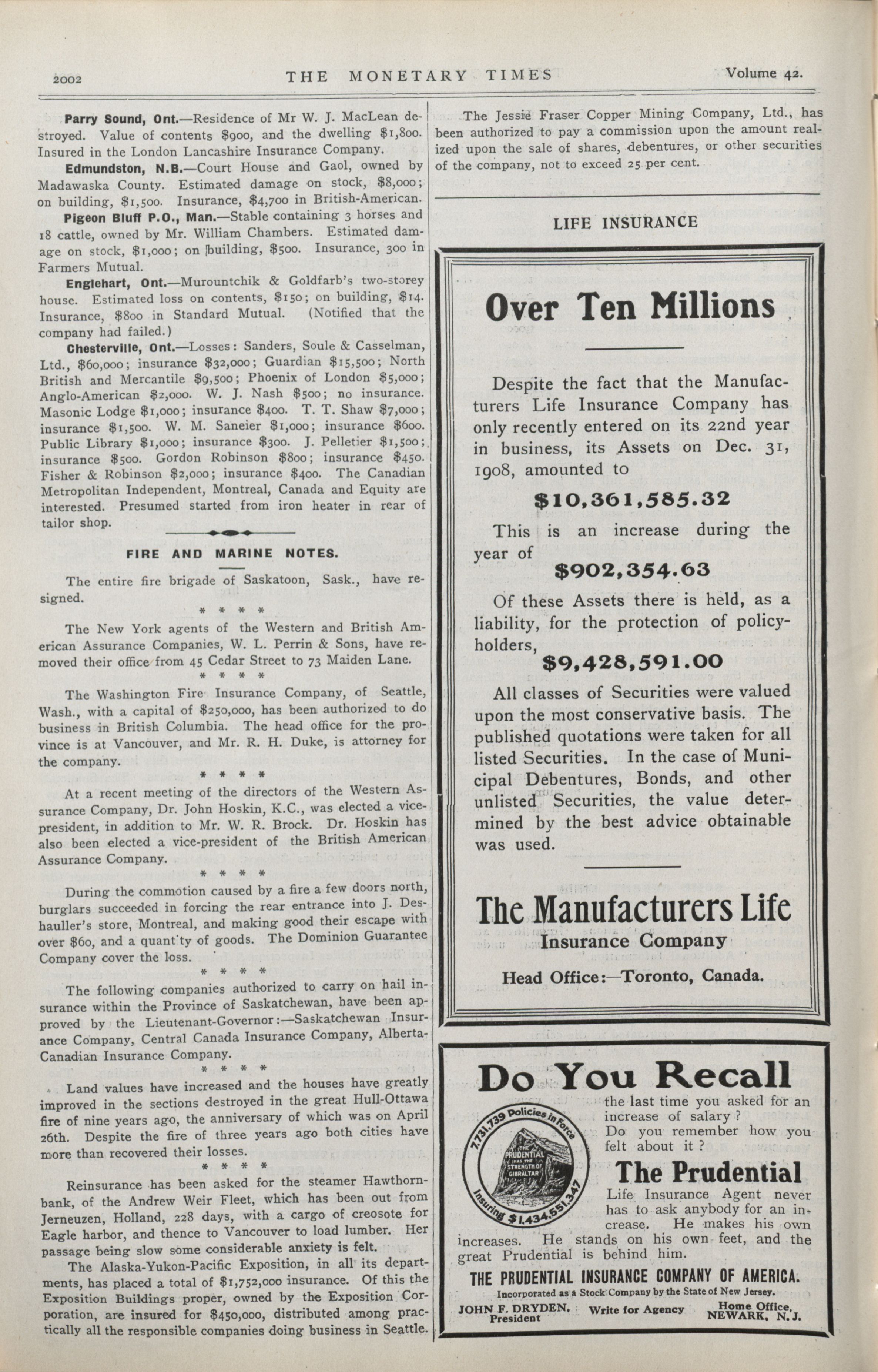 The monetary times, trade review and insurance chronicle : Vol. 42 No. 45. (May 8th, 1909.)