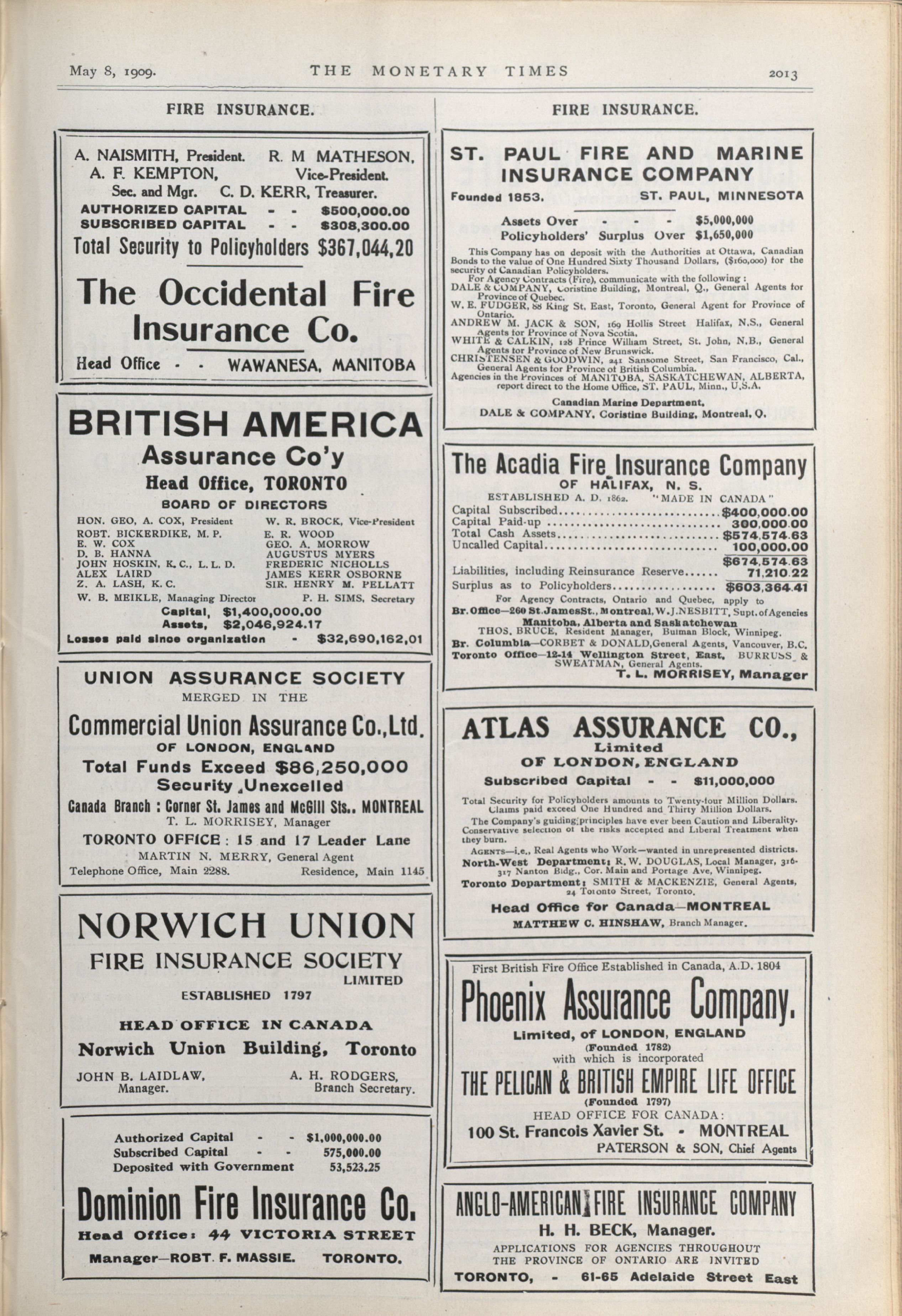 - The Monetary Times, trade review and insurance chronicle. : Vol. 42 No. 45. (May 8th, 1909.)